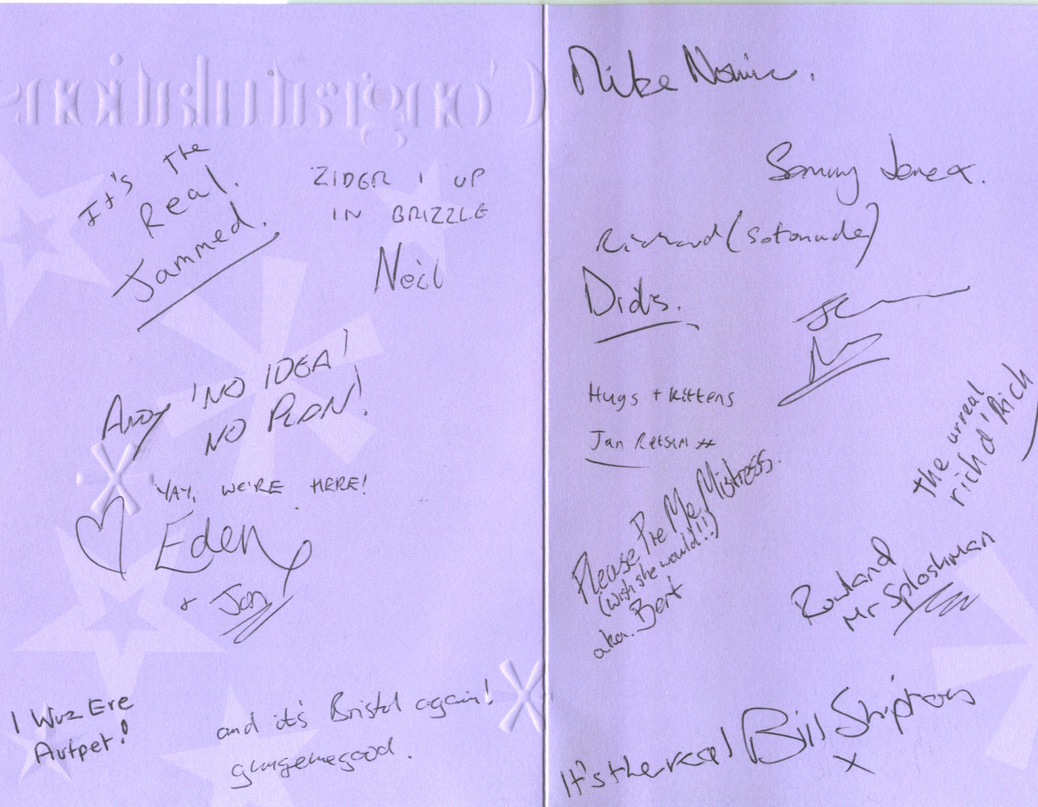 The Bristol Splunch 'autograph book', which everyone managed to sign.