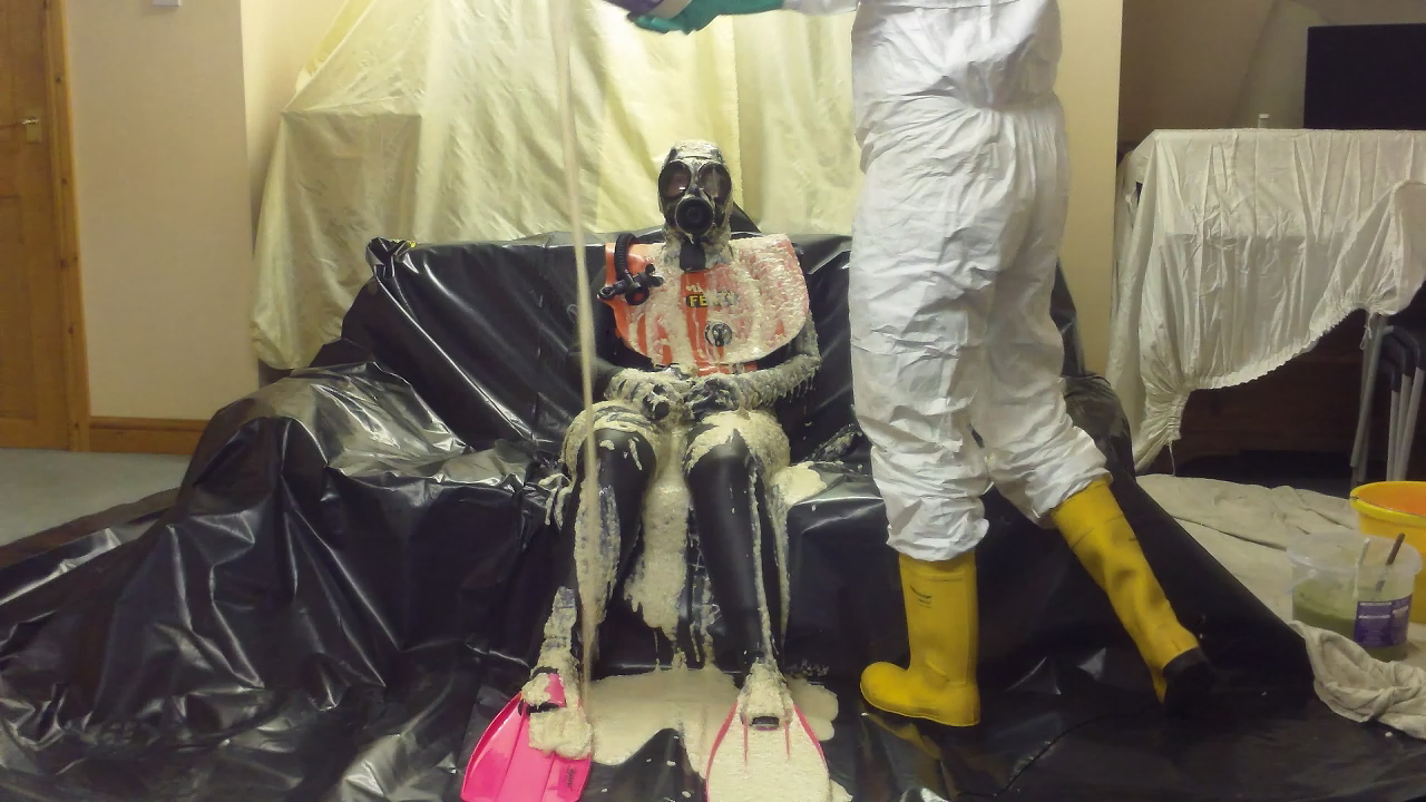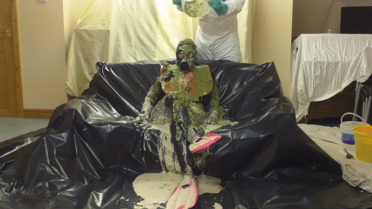 We both made the most of this bank holiday weekend and after not too much persuading she got geared up in her full rubber frogwoman outfit, gave her the choice of what gunge and mushy peas were mentioned, 3 hours later, cooker needing major cleaning and the house stinking of a chip shop we had lots of warm mushy peas.....never again!!