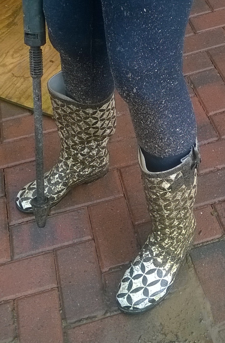Thought the boot lovers out there might like these pics of my other half after Jet washing the drive today I think there quit sexy myself