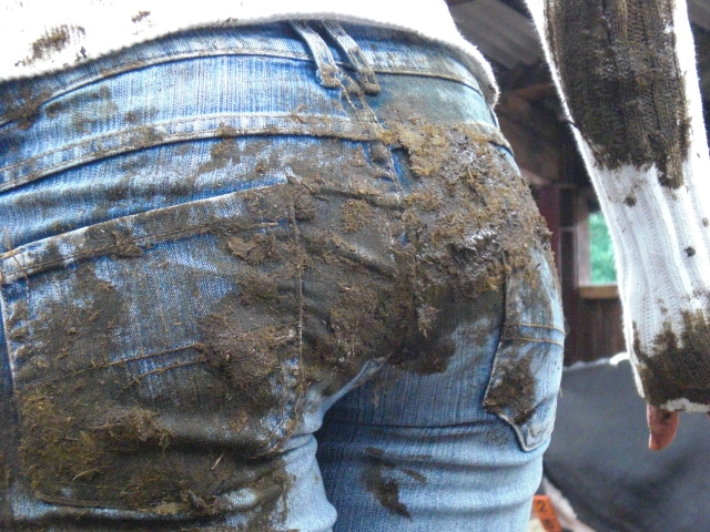 all of them worn by beautiful girls :-) In addition two pics of girls wearing white jeans (completely covered in cow dung) sitting in big soft cow patties, seen from the crotch (an admittedly naughty sight)...
