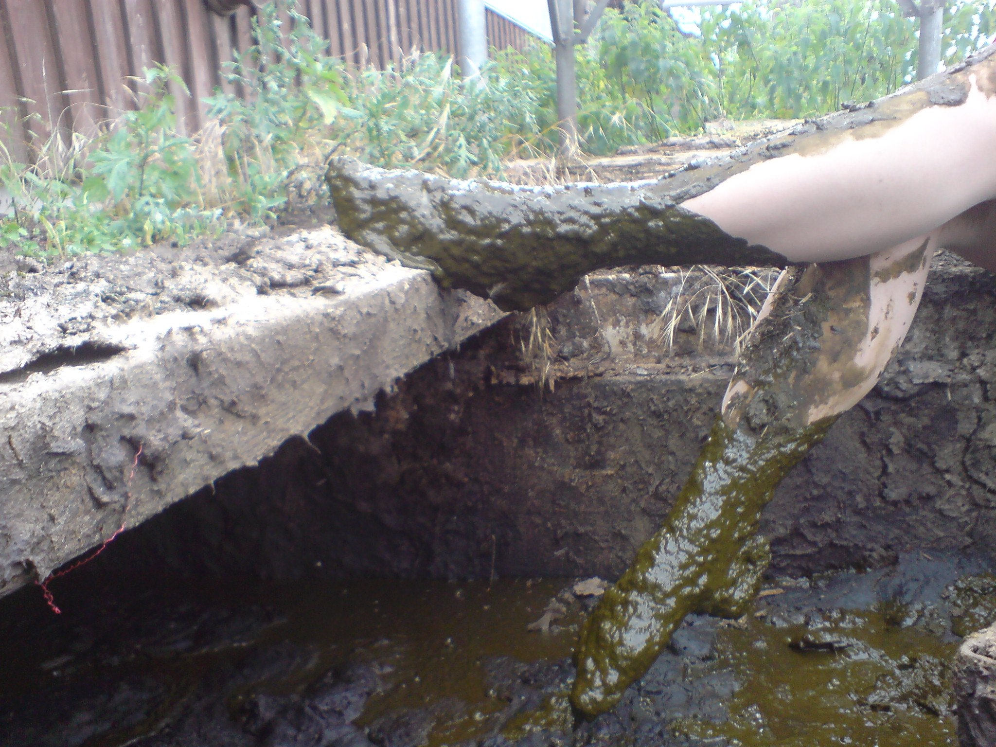 - walking over a slatted floor covered with cow dung and splashing around in the soft muck.