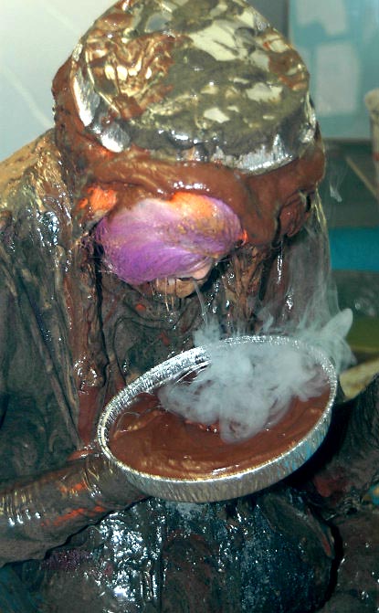 When I play I usually fill my bra with un-broken egss - until the 'end'