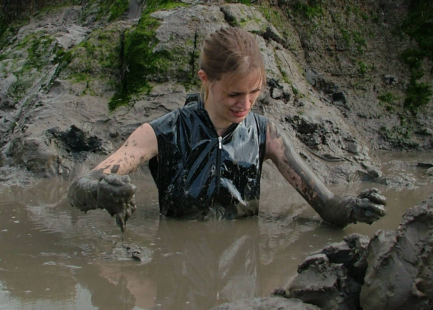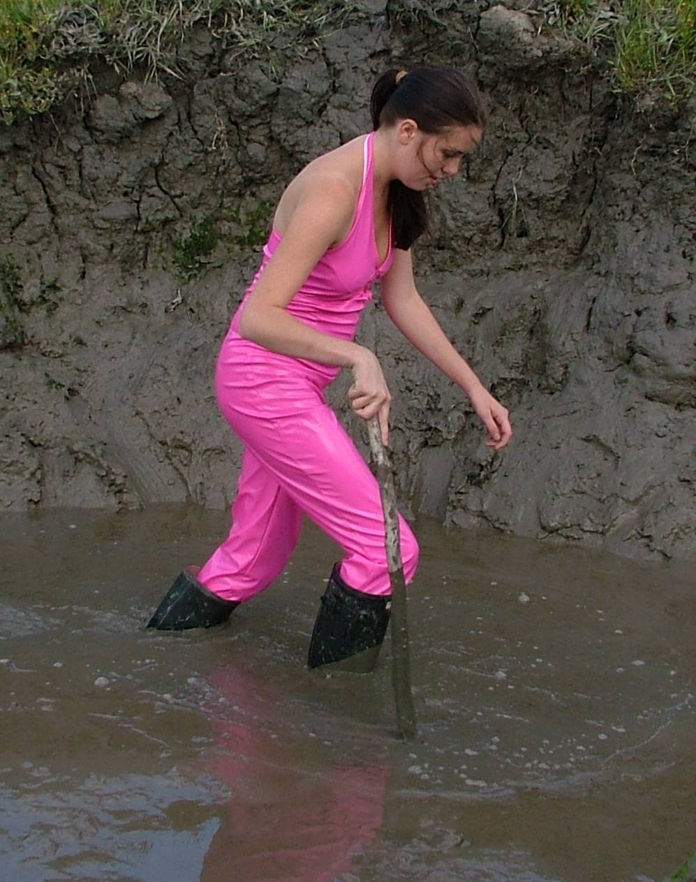 YAY!!!! Nuthin like a muddy pvc Catsuit, here'e mme an my friend Carmelle gettin muddy, lucky bitch She's wearin the Catsuit