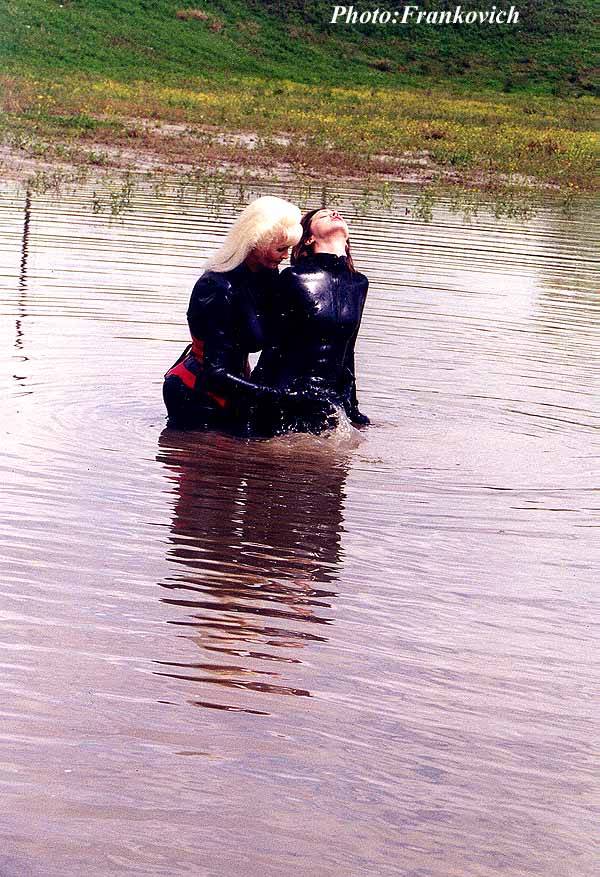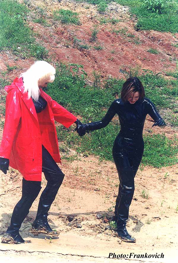 Sweet Jane amd Emily Marilyn rubber catsuit mud fun