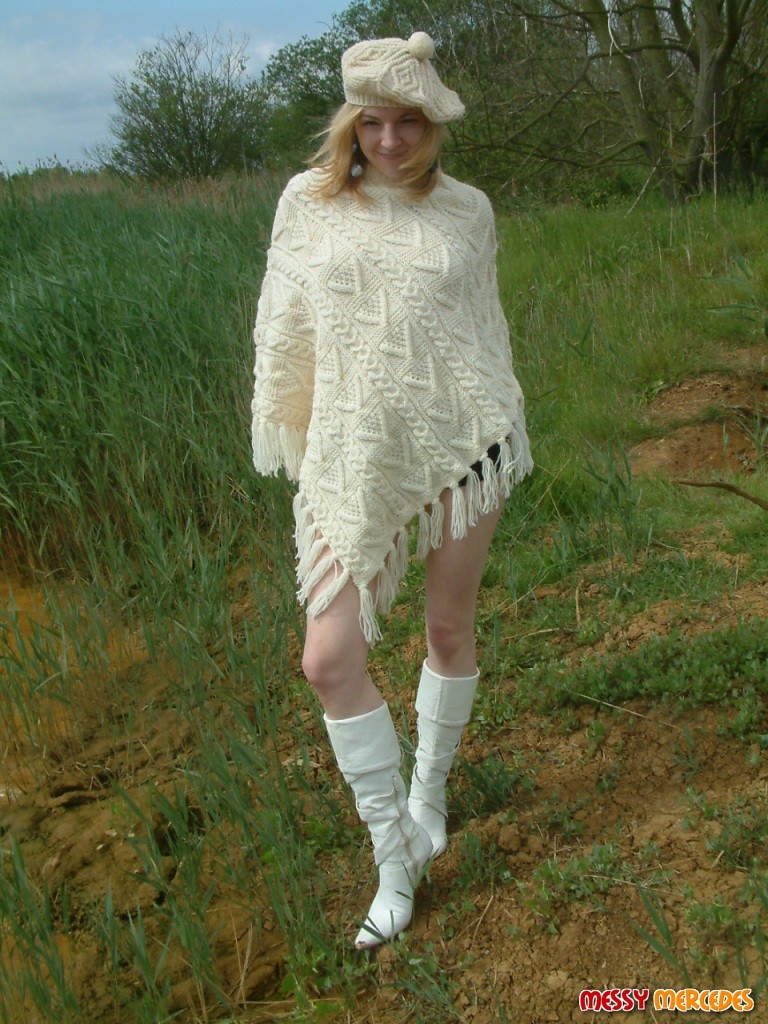 The clothing for this shoot was sent to me to wear as a request. :D I'll be honest - wasn't too sure about the "tea cosy" hat at first :? - but I think I really pulled it off!?!?! :D Anyways, as you can see I was wearing "the hat" a white knitted poncho, boots & not much else!! :wink: It's definitely not sumthin I wud'a picked out myself, but i think the poncho was really effective in the mud. Loved the way the tassles dragged across it. As you can see the hat also came in quite handy as it held the mud so well...I filled it up (you wudn't believe how heavy it was!) & quickly put it on my head!! Luvvly! Dun that quite a few times actually - got a bit carried away! :lol: :lol: :lol: As the poncho's made of really thick wool it held the mud so well....had trouble standing or lifting my arms at the end of this shoot as I was knackered!! I love receiving clothing from fans as like in this case it's sumthin I'd never have chosen myself but it looked great. Thanks very much for the clothing donation & the other outfits you've also sent - they'll be suitably trashed soon too!! :D If anyone else wants to send me sumthin to wear plse check out the "clothe me up section" on my homepage.....THANKS in advance!! lol