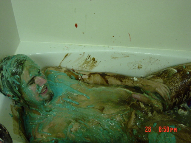 The first pictures shows everything that was used that night, though I can't tell you how or where. Because the first shot was on my face which made it hard to see after that. All I remember was slop being thrown at me from all directions and hands rubbing all over... Mmmmm give me a min.