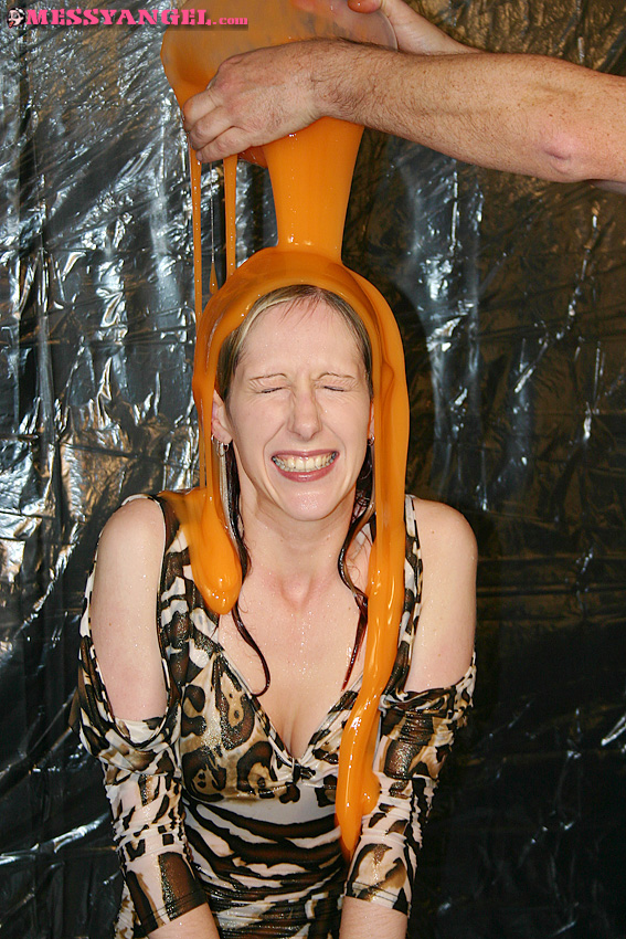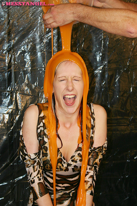 One minor bit of constructive criticism - how come we almost never get to see the models lower half in these kinds of photosets? In this case it looks like the outfit she's wearing is actually a nice length, would be good to see her skirt succumbing to "the treatment" as the gunge flows down over and through her clothes from where it's being poured on above, too.