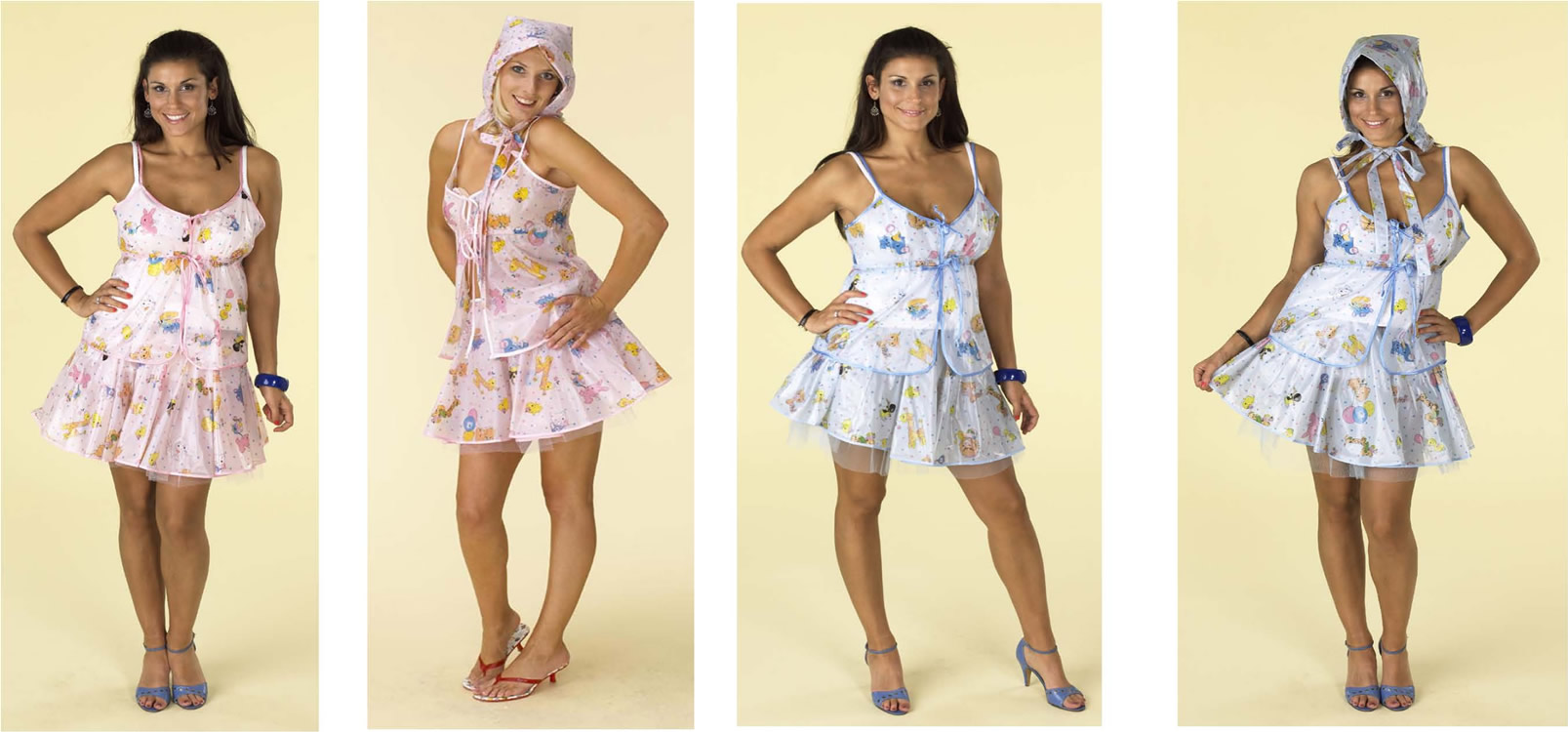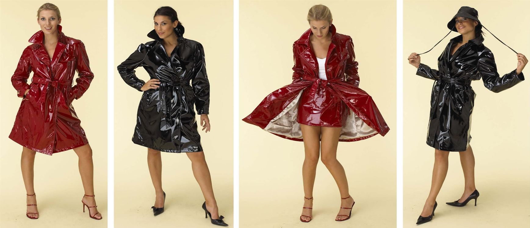 Not sure the dresses are slutty enough for me! Though the rainwear looks good, of course! Plastic clothing would be perfect for sploshing if it held everything inside it (like plastic panties) and the washing would be a doddle for once, but it wouldn't have that nice, heavy feeling. Slippery though - and that's always fun.