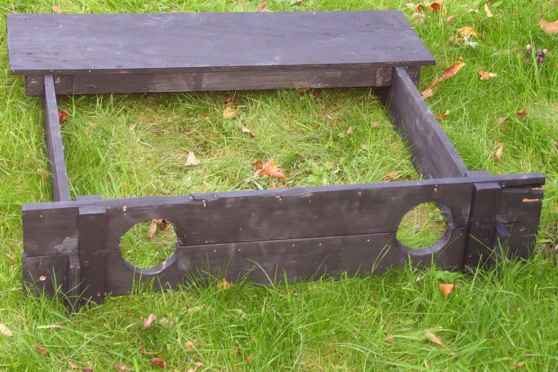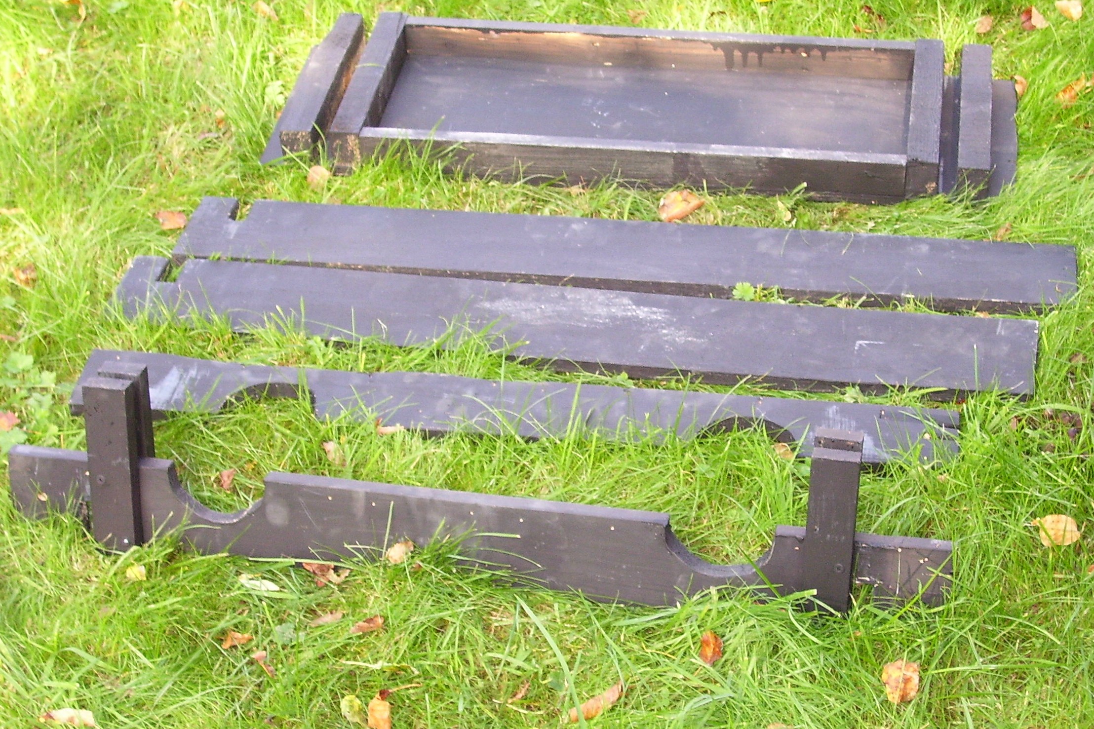A few weeks ago we had another reference to stocks when what in fact was used was a pillory. Unable to get to sleep one night I imagined how some real stocks could be created, and in the morning was eager to try to make some using some scrap wood from the garage. I did spend a little on paint. Although you will be able to see I am no carpenter, the results are encouraging, with my example photographed on the village green.