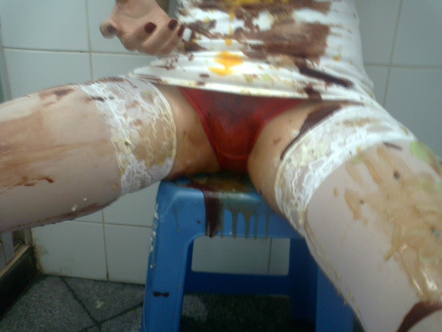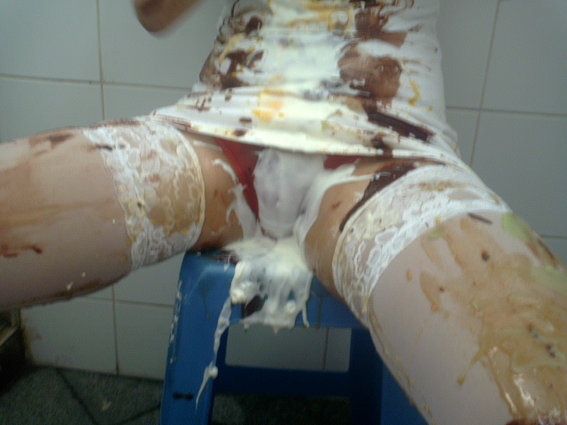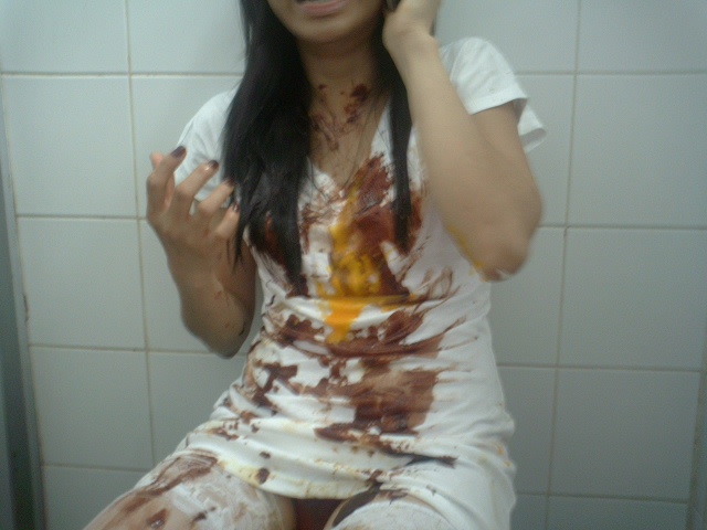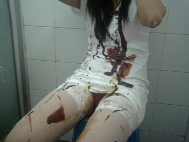 And so on, and so on - all the while, I'm covering her in chocolate, yoghurt, strawberry jam, honey, custard, eggs, cream, coffee powder, melted ice cream, oil etc etc