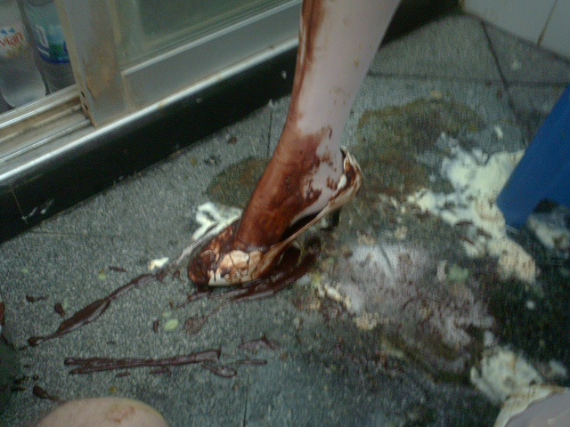She said she found it as nerve-wrecking as the first time she got messy, which leant the whole thing a really good edge. It was so funny listening to her trying to make serious phone calls and not crack up, as she was having all kinds of stuff splatted onto her.