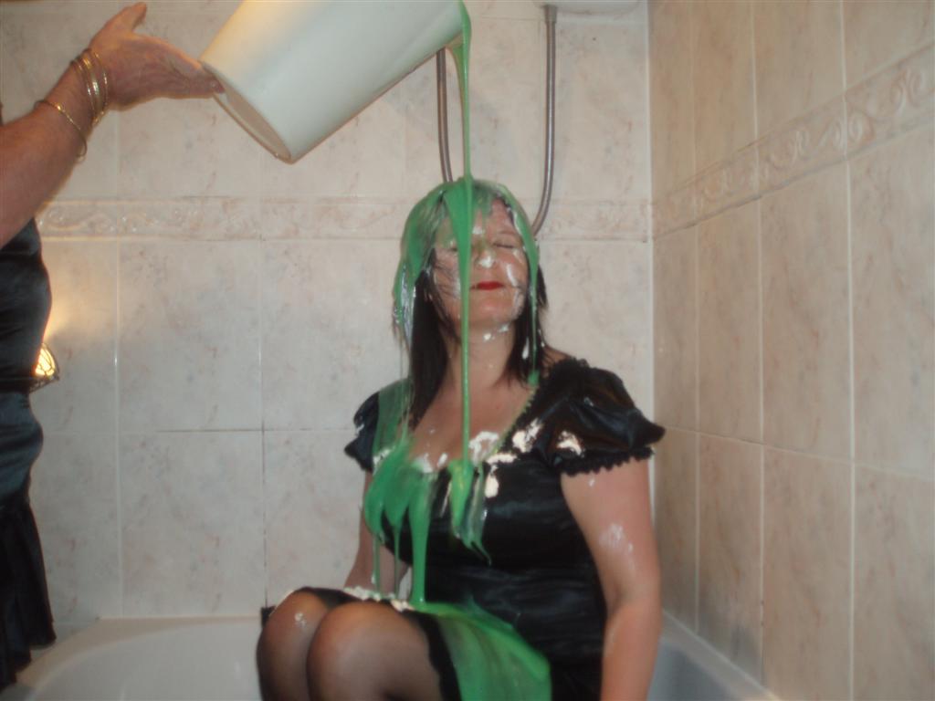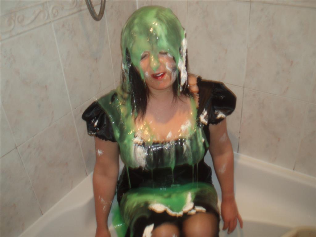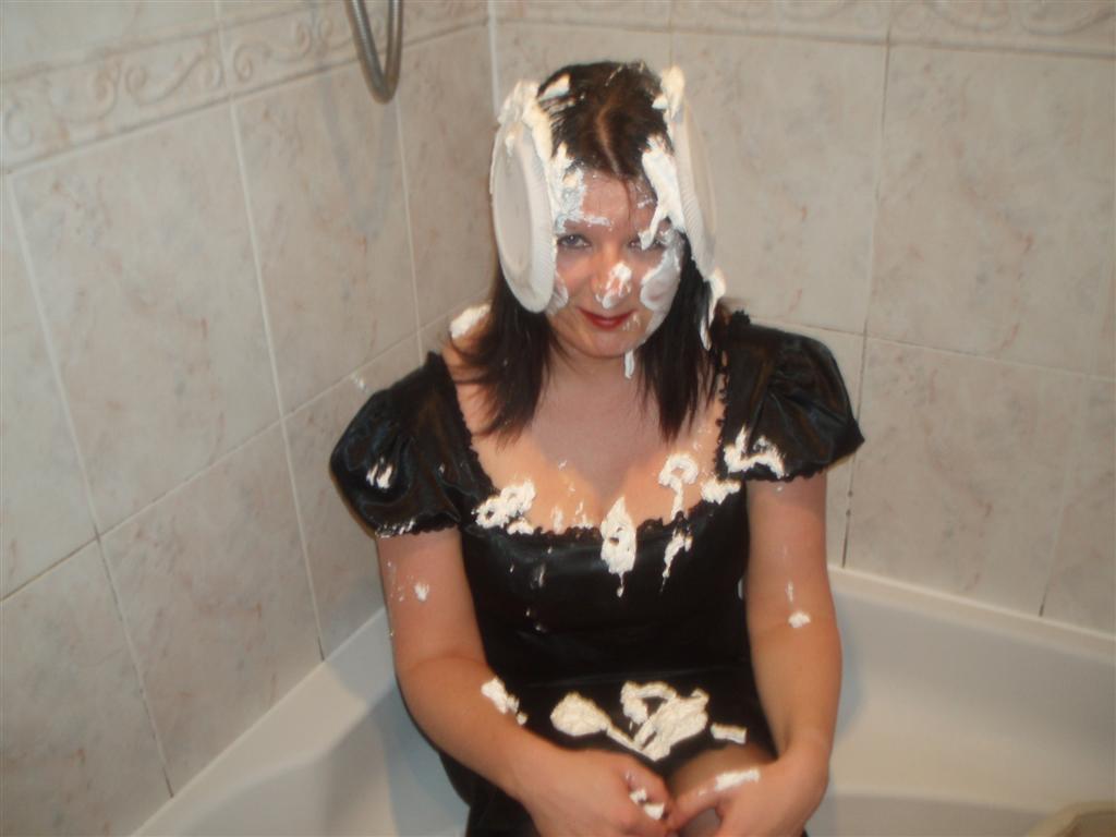 The bath is ideal for gettin messy and makes the clean up so easy........i just turn the shower on and we have a wet session i'll post some wet pics shortly .....................and Andy its not a french Maids outfit but does look like one ill give you that, its just a black satin dress but add an apron and i guess it could turn into one