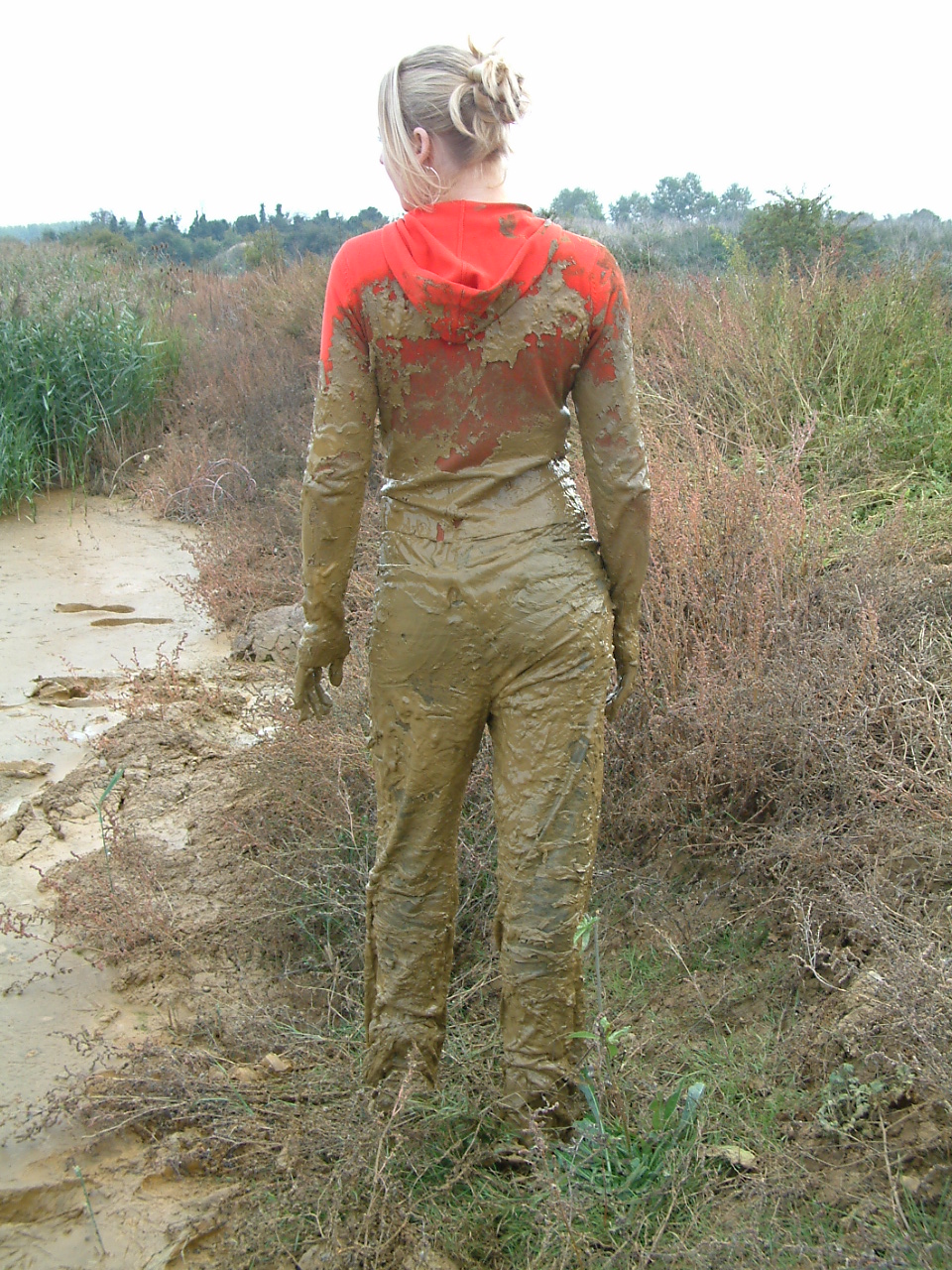 Here you'll see me venture into the thick mud wearing a red hoodie, black trousers & black ankle boots. I walked in very slowly....all you boot & shoe fans'll love this one! :o
