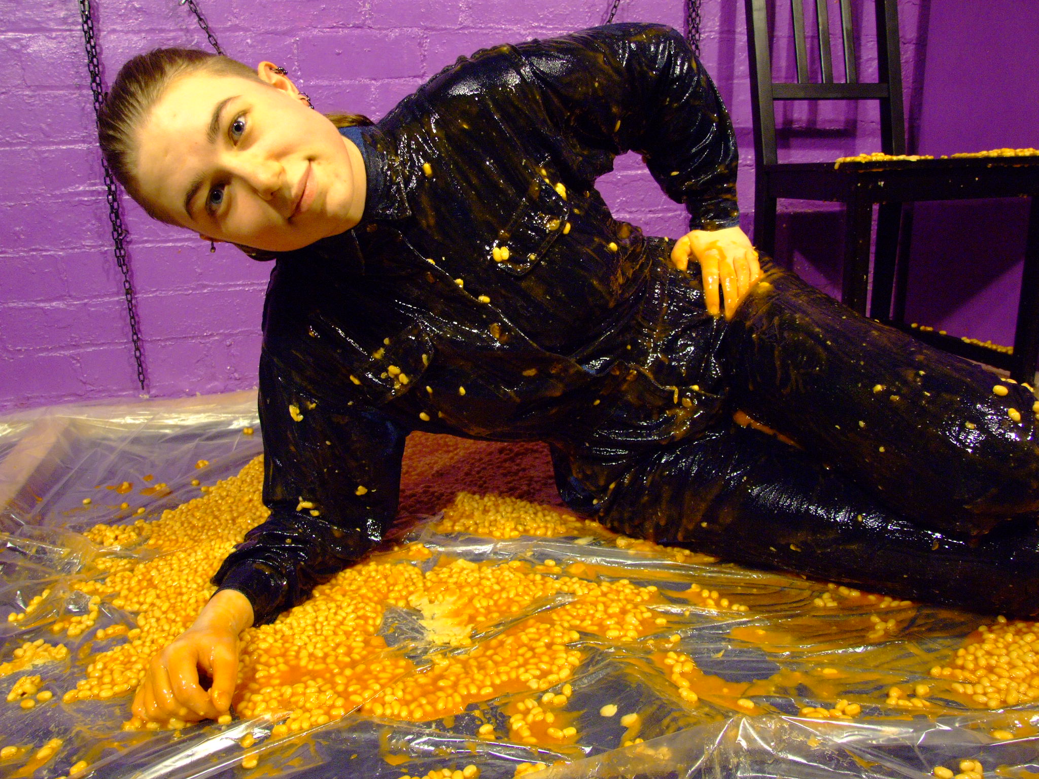 Anyone for a bean-feast? Maiden beaned in an 80s jumpsuit!