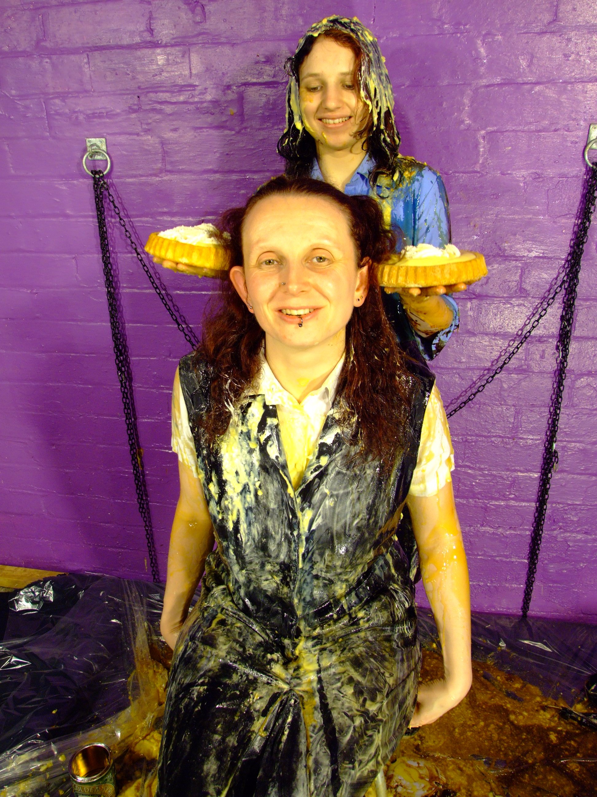 Lady Amaranth of the Southlands has come to spend a week at the Hall, mainly to explore the countryside, but also to partake of Lady Jasmine's famed sploshing hospitality. She's actually booked a session of gunge therapy with Nurse Wendy-Household, but first she decides have a bit of simple gunge fun.