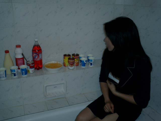 Next I decided she needed something really yucky in her panties. How about condensed cream of mushroom soup ... followed by a can of baked beans.