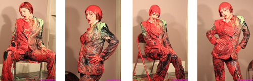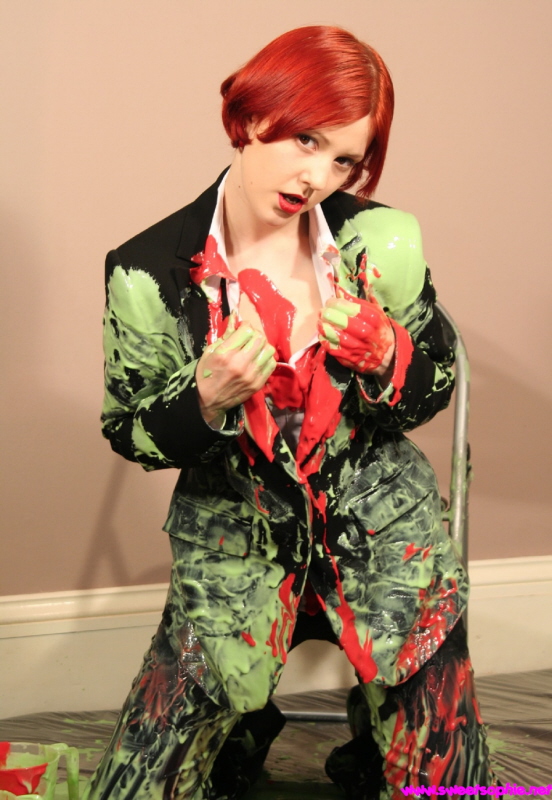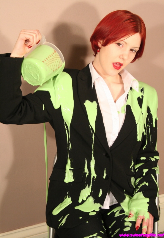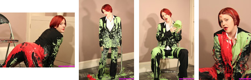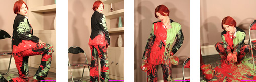 next i sat in a chair with a couple of jugs and slowly covered the whole of my suit with red and green slime :) I found it heaps of fun to destroy my outfit. it was most amazing stress relief :):):)