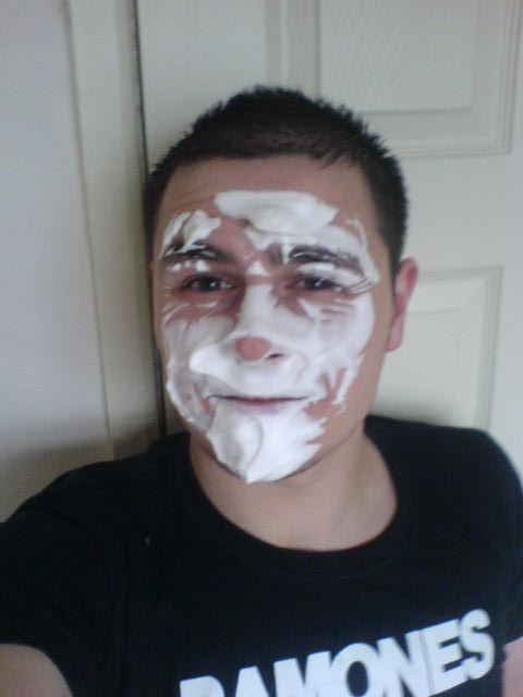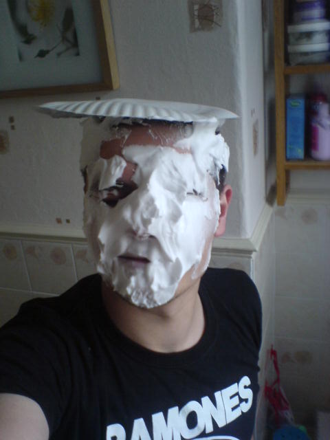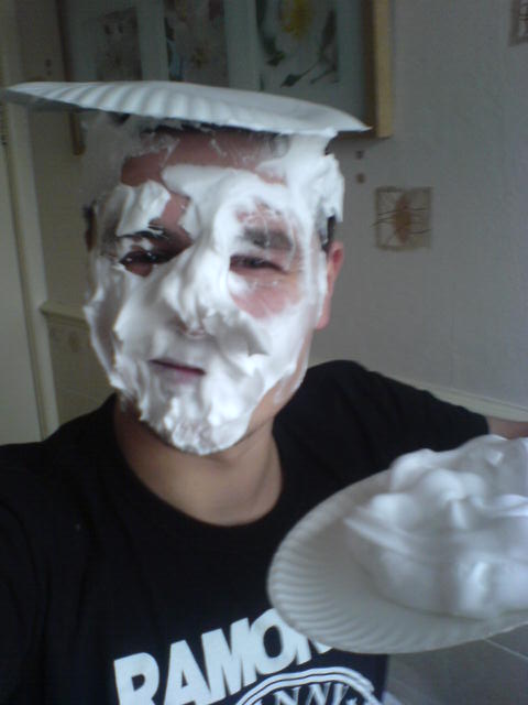 seen as i broke my splosh v yesterday i thought id have a quick play with the shaving foam! tip-dont be a bloody pillock like me and shaving cream pie your privates!!!..........."me tackles on fire!!!!!!!"