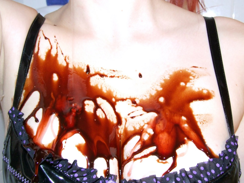 This was our third session, and the first in which I was particularly involved, though the pictures stop about there since there was no-one to hold the camera. I ventured into world of cross-dressing for it, borrowing a dress, tights and shoes off my lovely accomplice for it. We both had a blast, and we (particularly me :)) definitely got a whole lot messier once the camera got put in a safe place :D