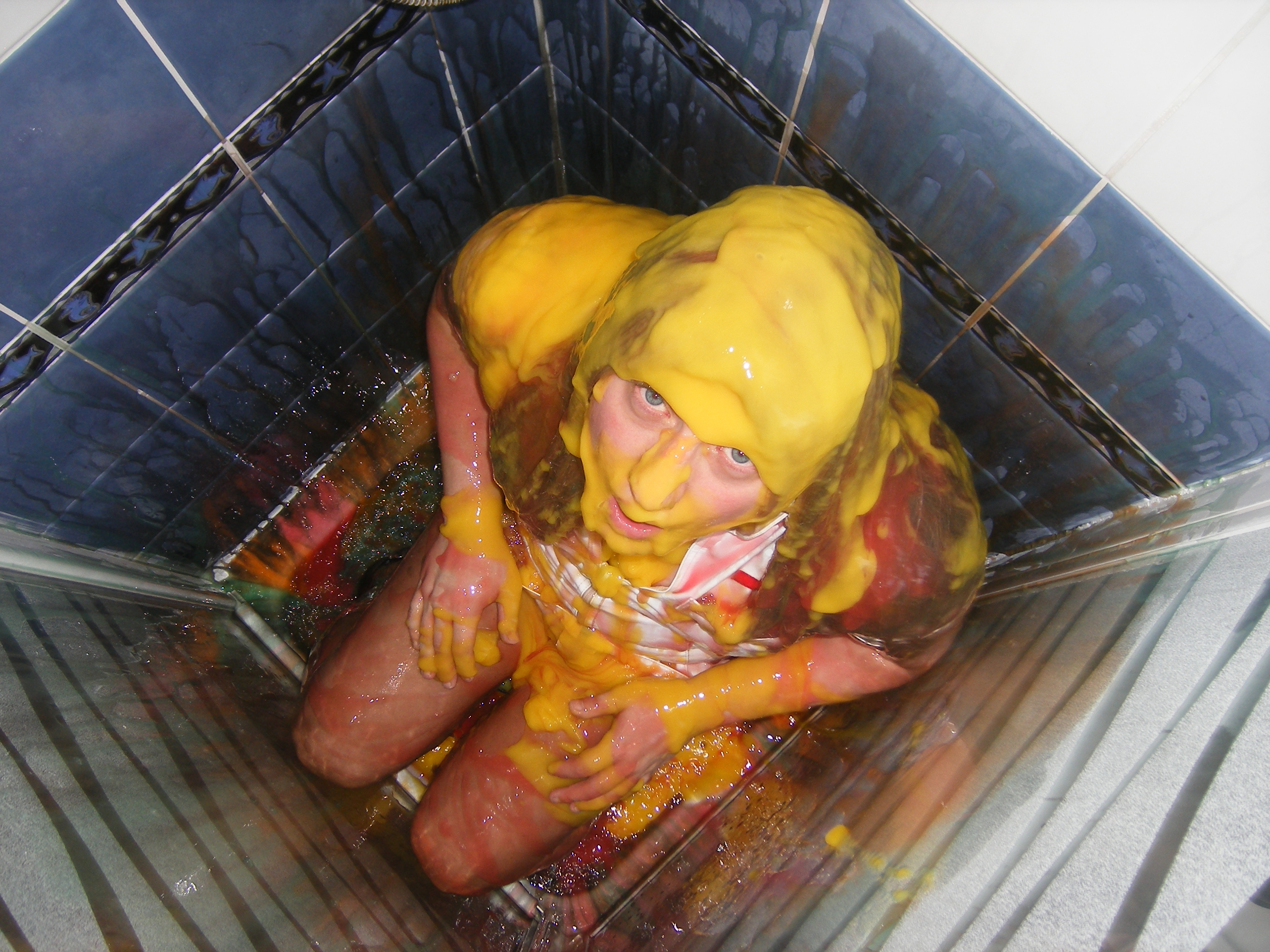 RE: Your worry about the wig - could you not splosh without putting it over your head? (I don't like stuff over my head so I just tend to do the body, mainly the lower half as tights filling is what does it for me.)