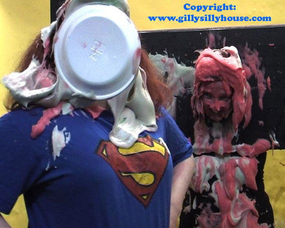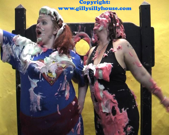 SuperDoll Parts 1 & 2 are BOTH up at www.gillysillyhouse.com NOW - a total of 23 minutes of very silly super action! Plenty of pies, gallons of multi-coloured cake mix, chocolate pud and porridge - not to mention two pairs of massive titties! - make this an epic comic book saga with everyone sending it up to the max.
