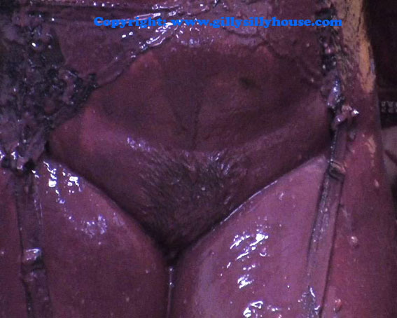 So SuperDoll decides to demonstrate what would happen if gunge like that was used on a mere human like her! Answer: it would soak straight through to her tits...and so begins a tights-filling, pantie packing, mess-pouring tit-for-tat battle between them!