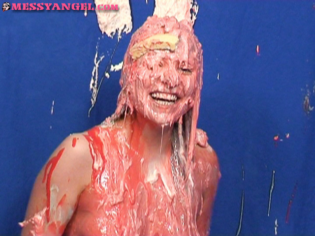There I was showing Karen the first pie... about to string it out, taunt her etc.... but NO. Karen decided she wanted that pie there and then and proceeded to launch herself face first into its gooey depths.... :shock: