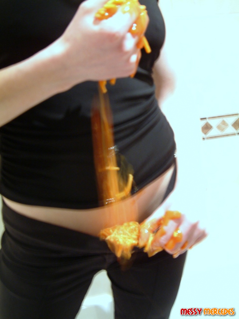 Here I'm wearing a black top & trousers & no underwear! :shock: :shock: I use spaghetti, creamed rice, chocolate spray cream, tomato sauce, beans, shaving foam & gunge. :roll: See me rubbing it into my top, filling my trousers & stamping in my mess. :lol: :lol: You'll also see me tipping gunge down my trousers & see it run out the bottoms of my rolled up trousers.. :roll: ...mmmmm.... :D :D