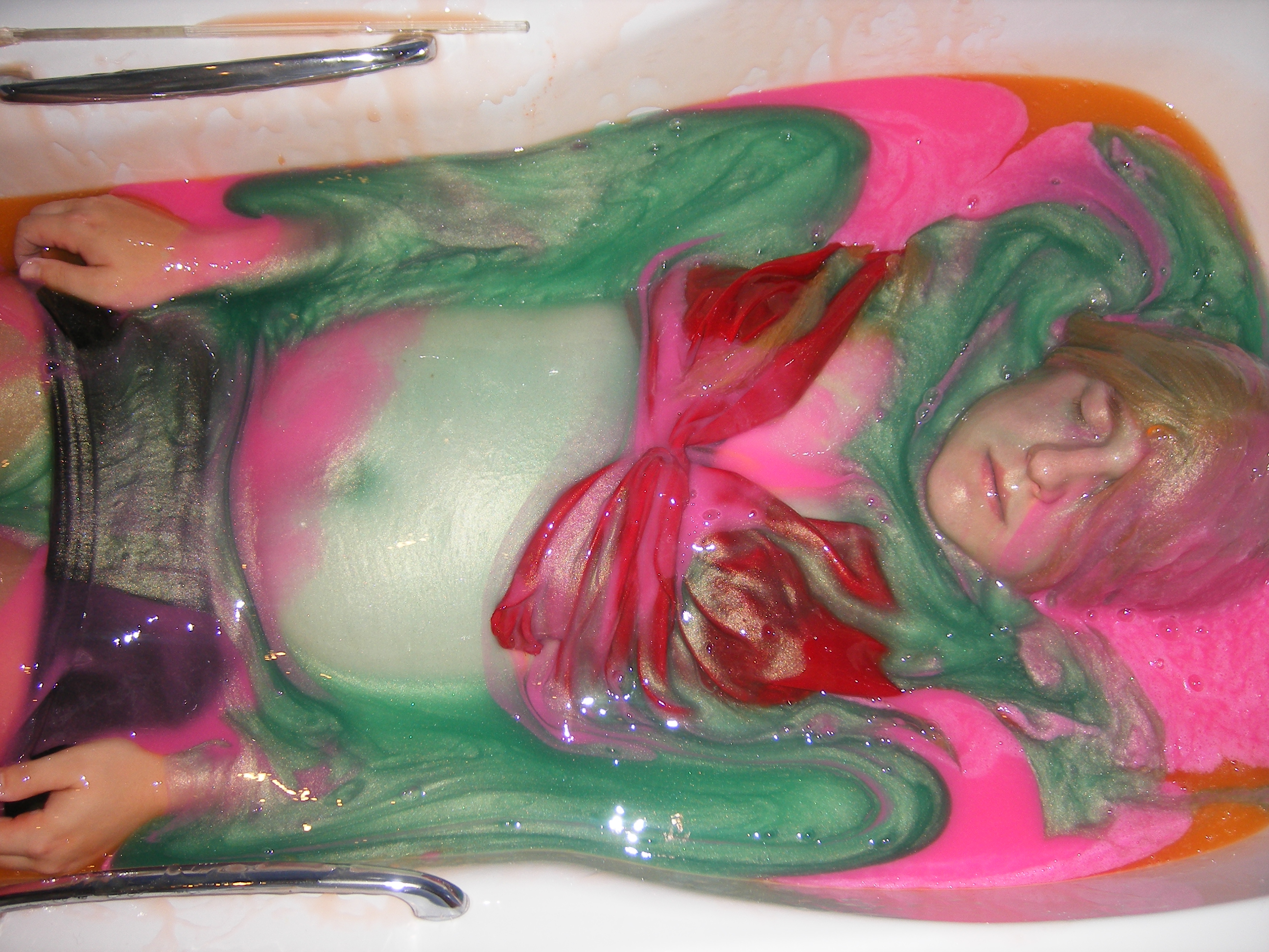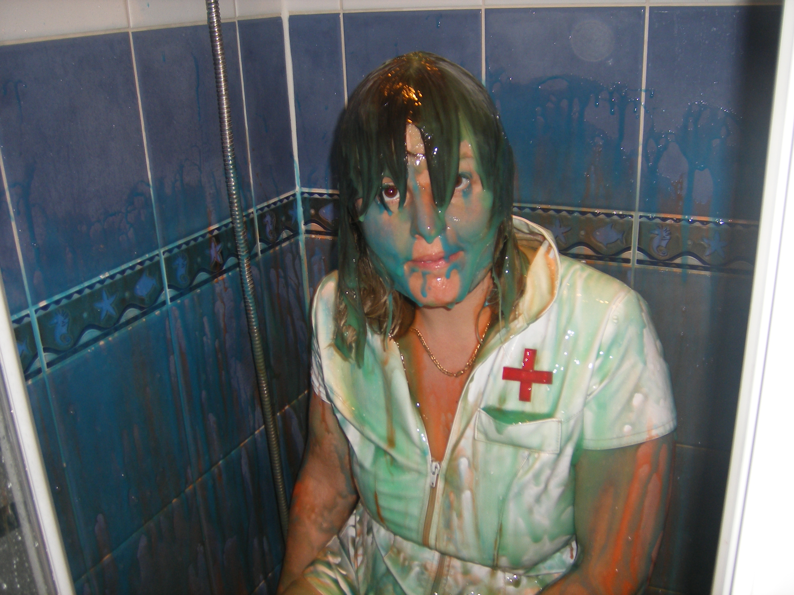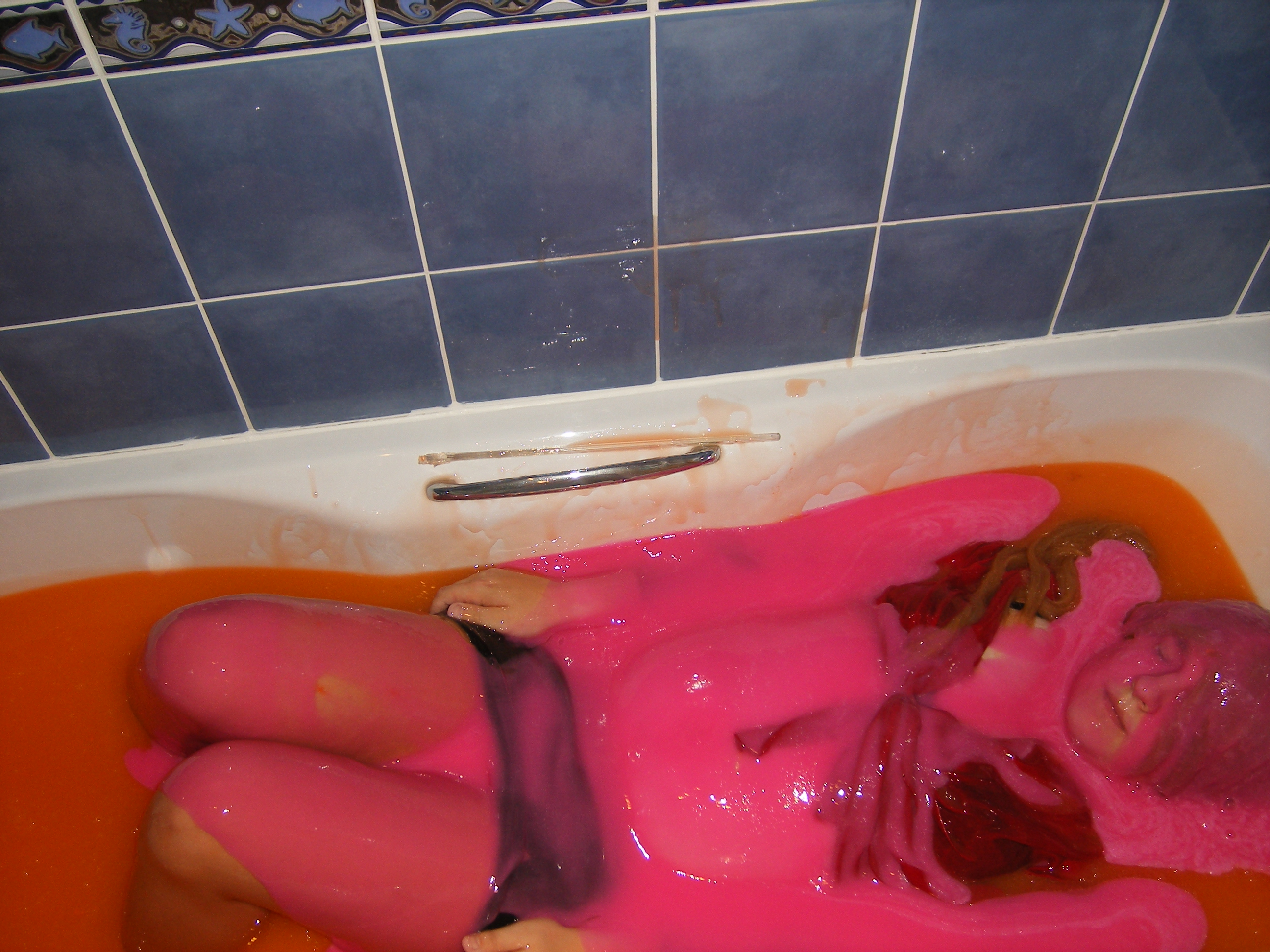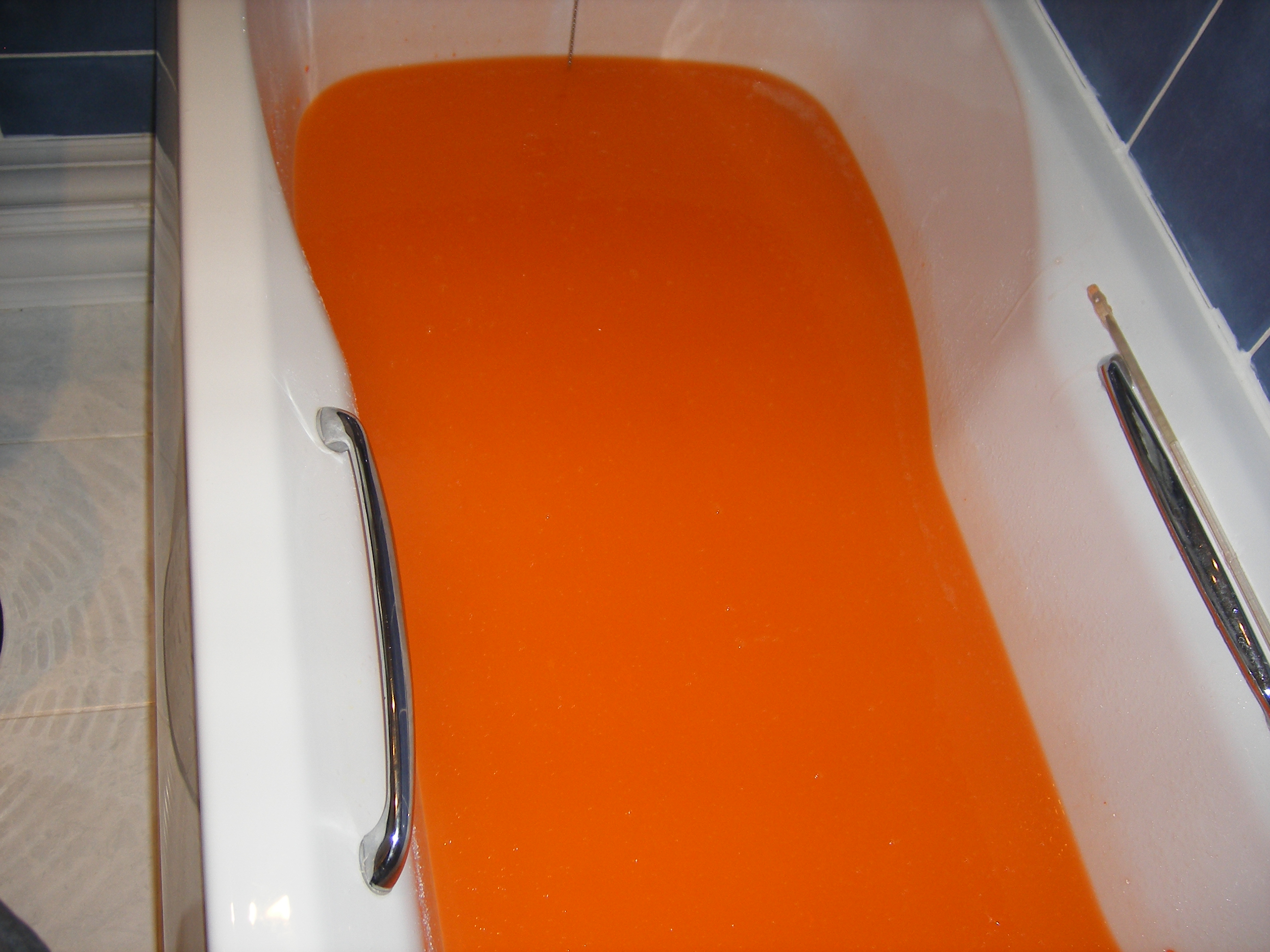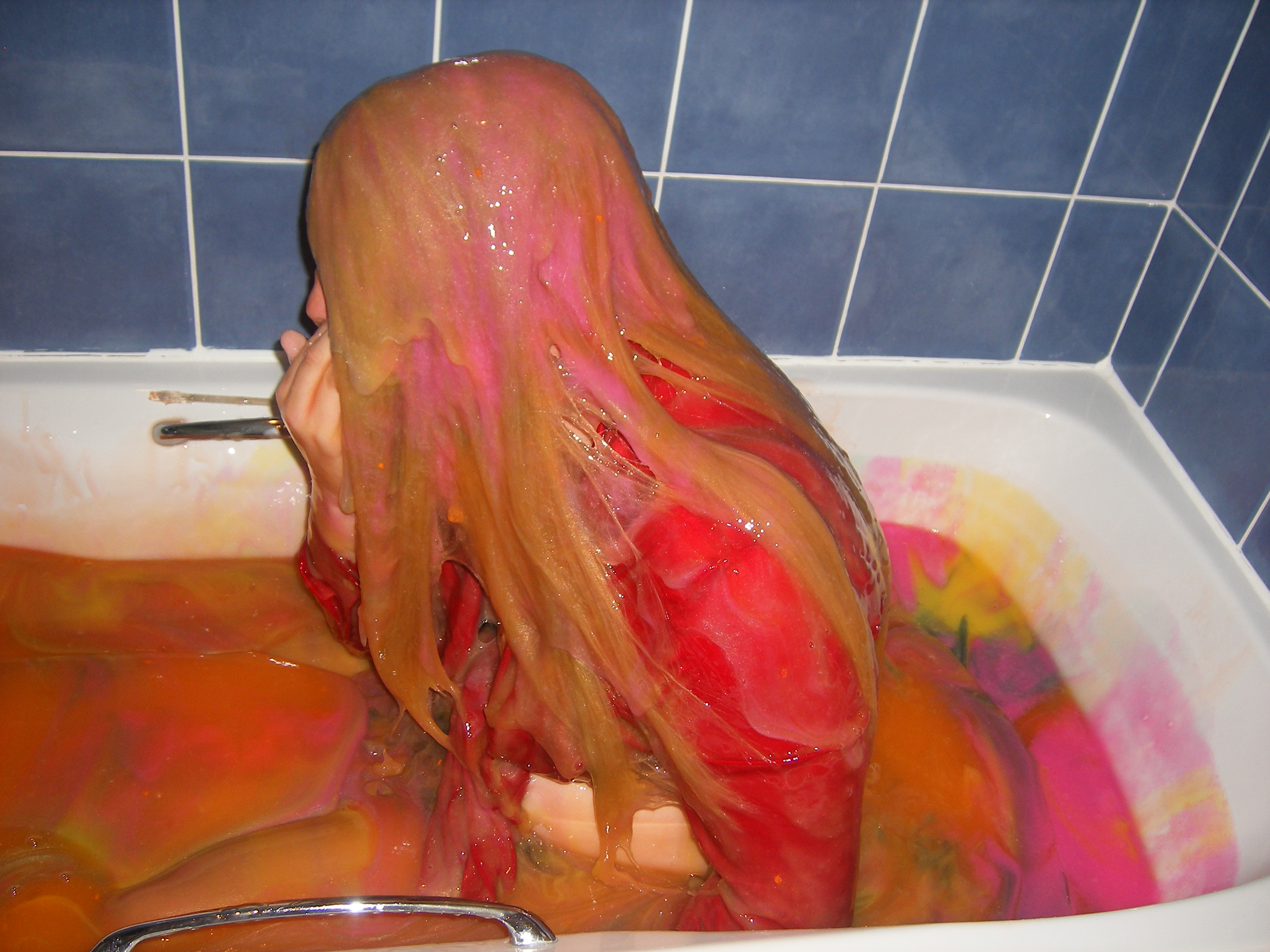 so we made 6 lots of gunge 8 litres each, then we thaught sod it lets fill the bath with gunge too! at over 100 litres do we win the most gunge in a session prize