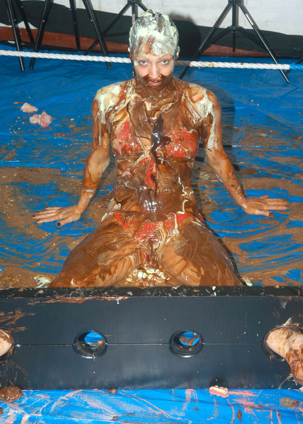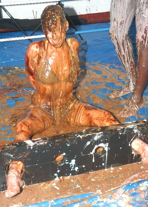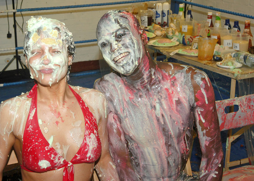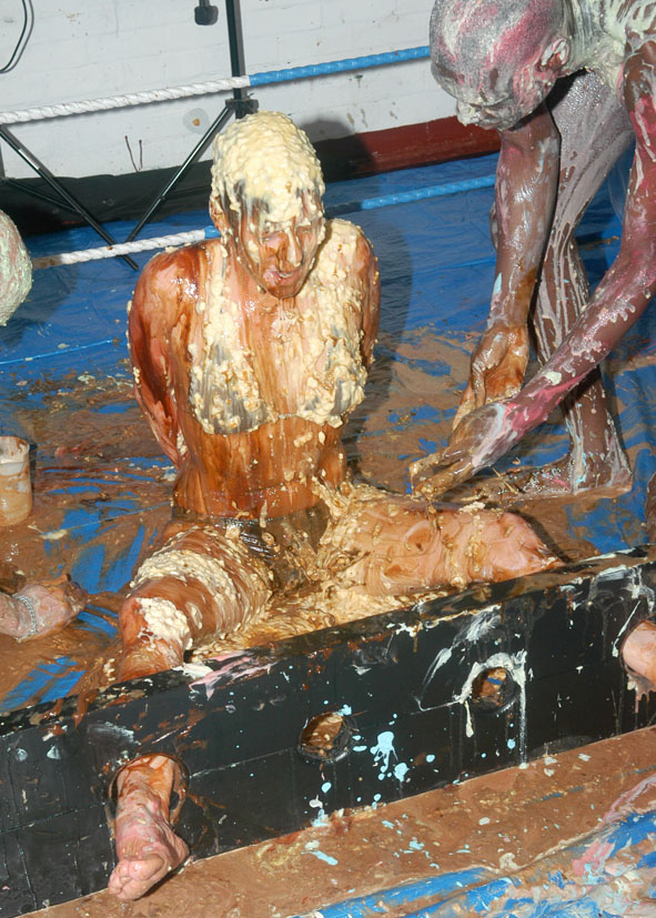 Baked beans seem to be the substance topic of the month on here. We thought we'd continue it with what else but good ole baked bean wrestling so we bring you Phoenix, Taz and Biker Babe getting down and dirty in the baked bean pit.