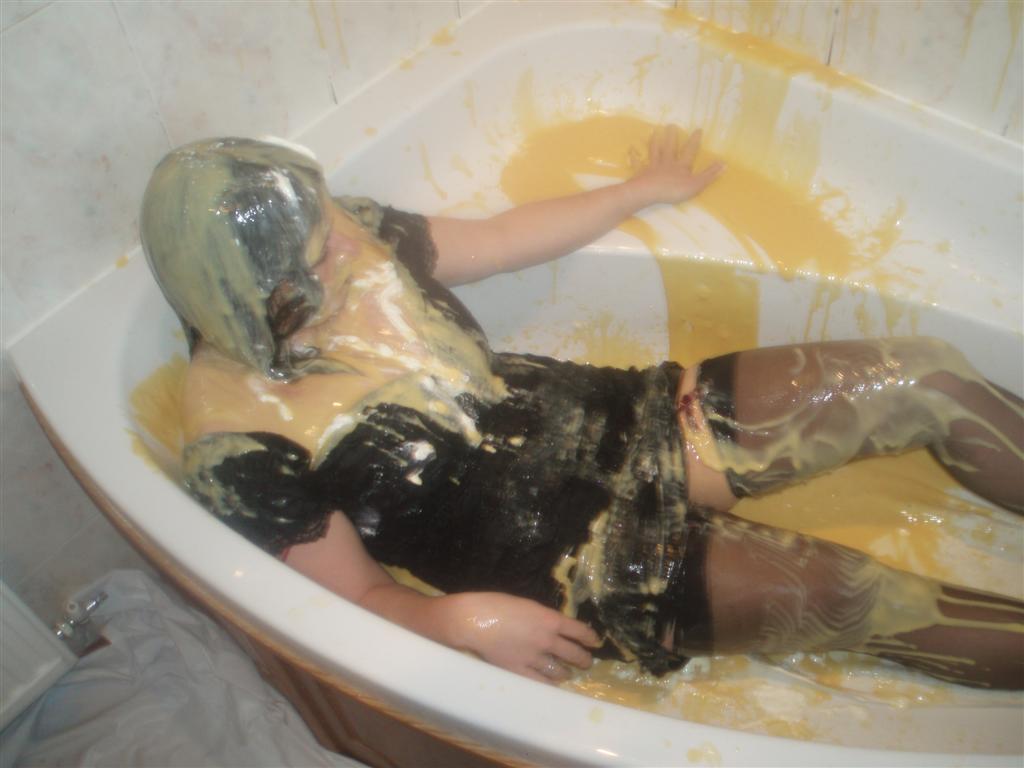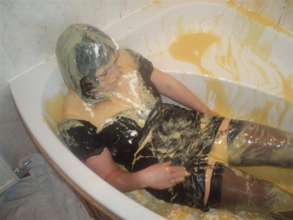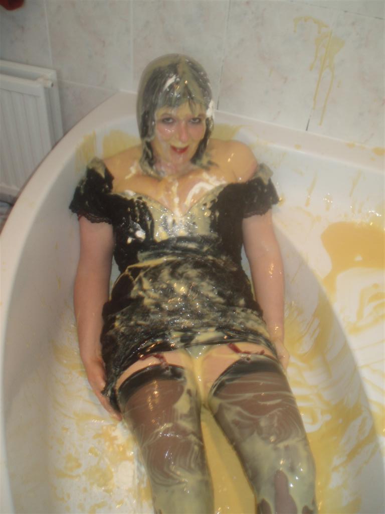 Wonderful pics. Lovely lady, lovely custard, lovely clothes and of course smashing stockings.