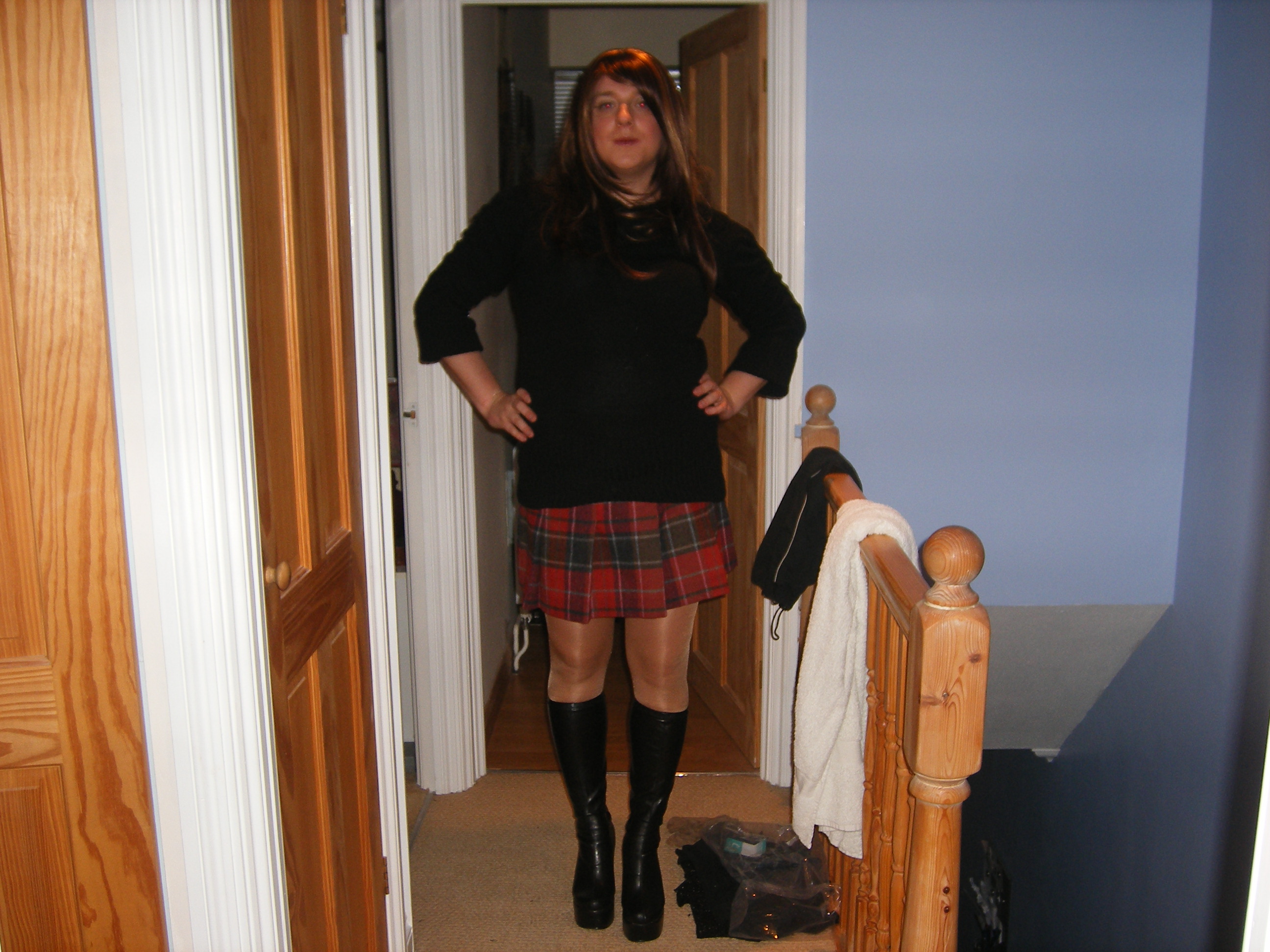 I have a pair of platform boots with a one inch platform and about four-and-a-half inch heel which I wear for 70s nights and really need stabilisers for! Also some three inch all over platforms which are comfortable as hell. They will be out on Fri night for a punk/glam night at the pub. God knows what Her Outdoors is bringing.