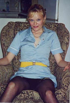 Best wishes for a speedy recovery from all here at the Hall, and here's a picture of Lady Jasmine in one of her all-time favourite outfits, nurses tunic and trousers, already sitting in a nice tray of custard and guess what she's going to do with that well filled blue Jasperware custard tureen on the floor?