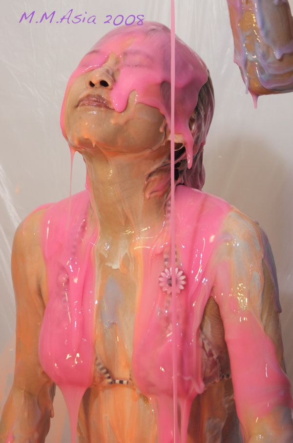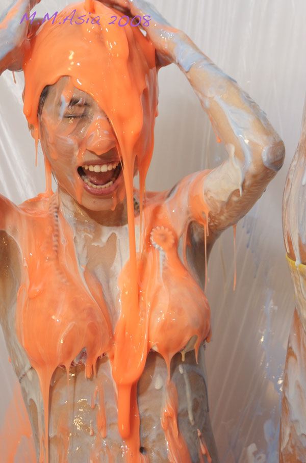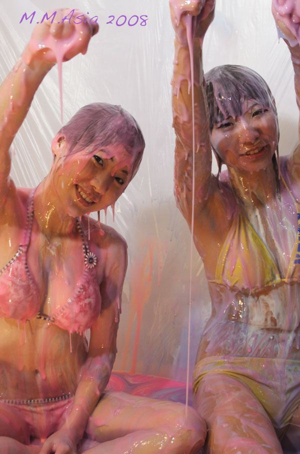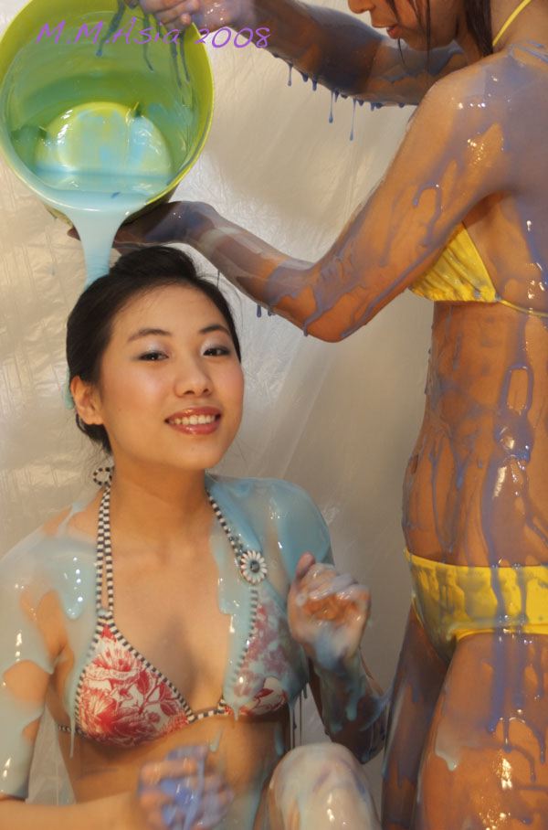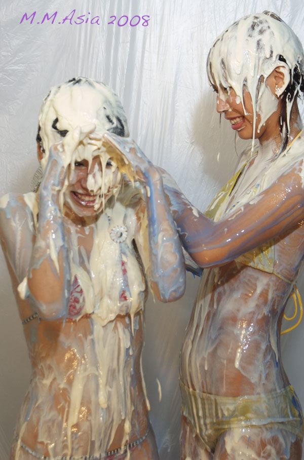 Layla and her friend Katy are all ready for the beach in their little bikinis. Luckily for us they decided it might be more fun to gunge and pie each other instead