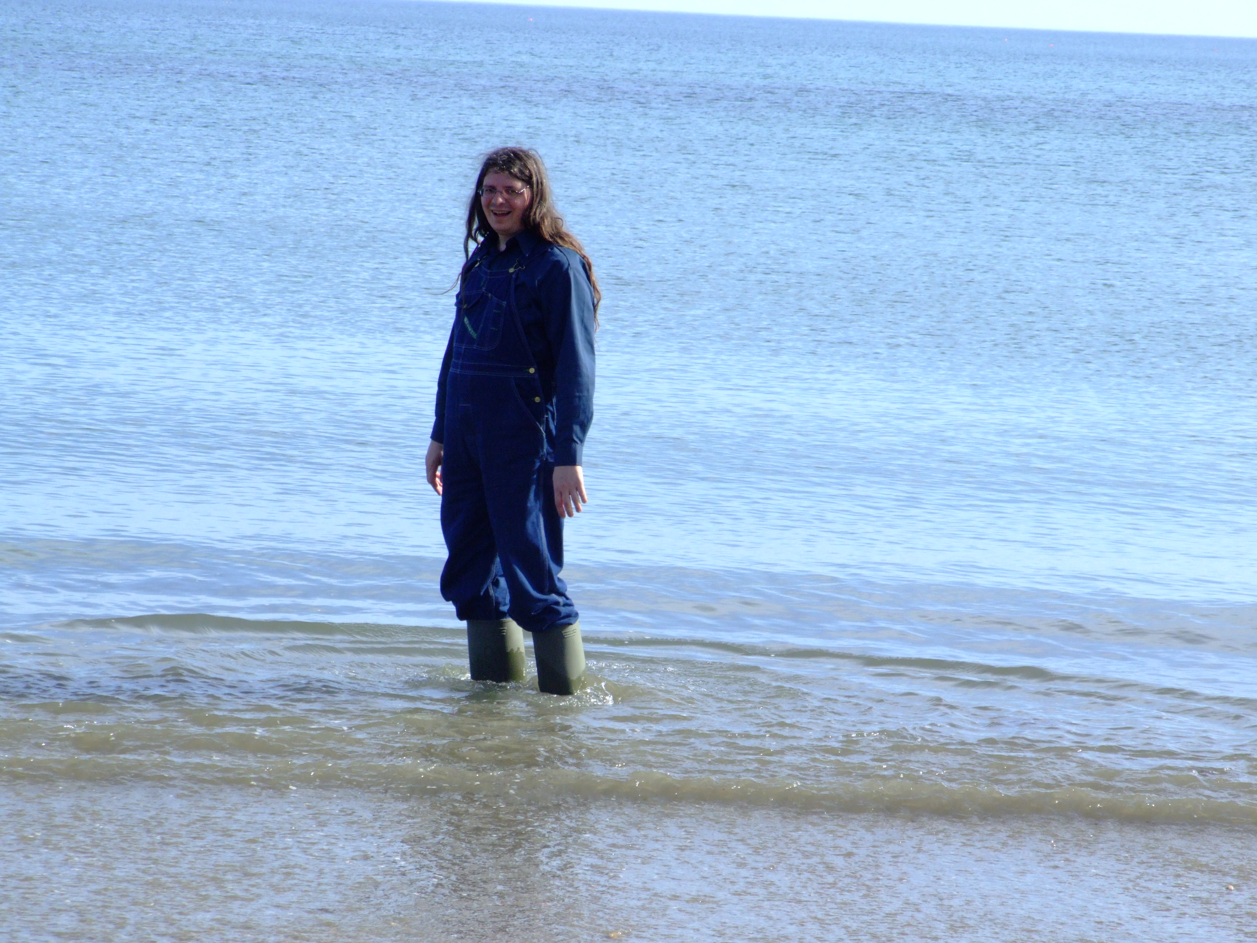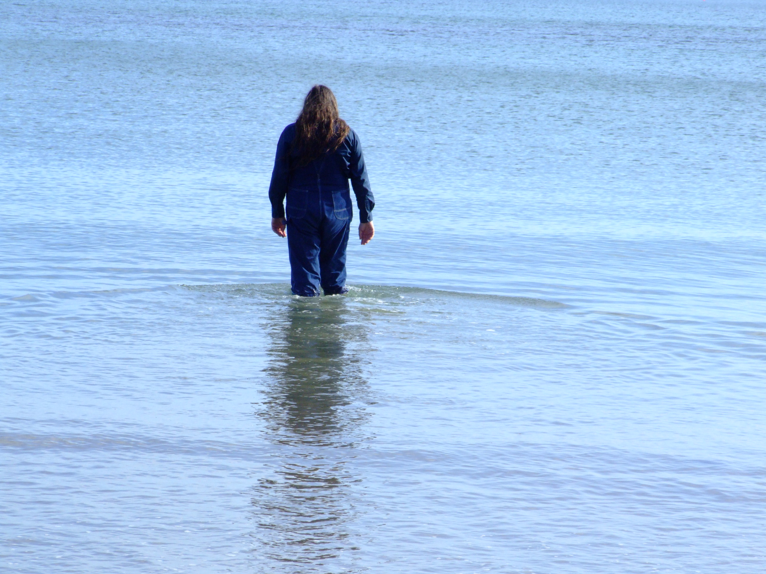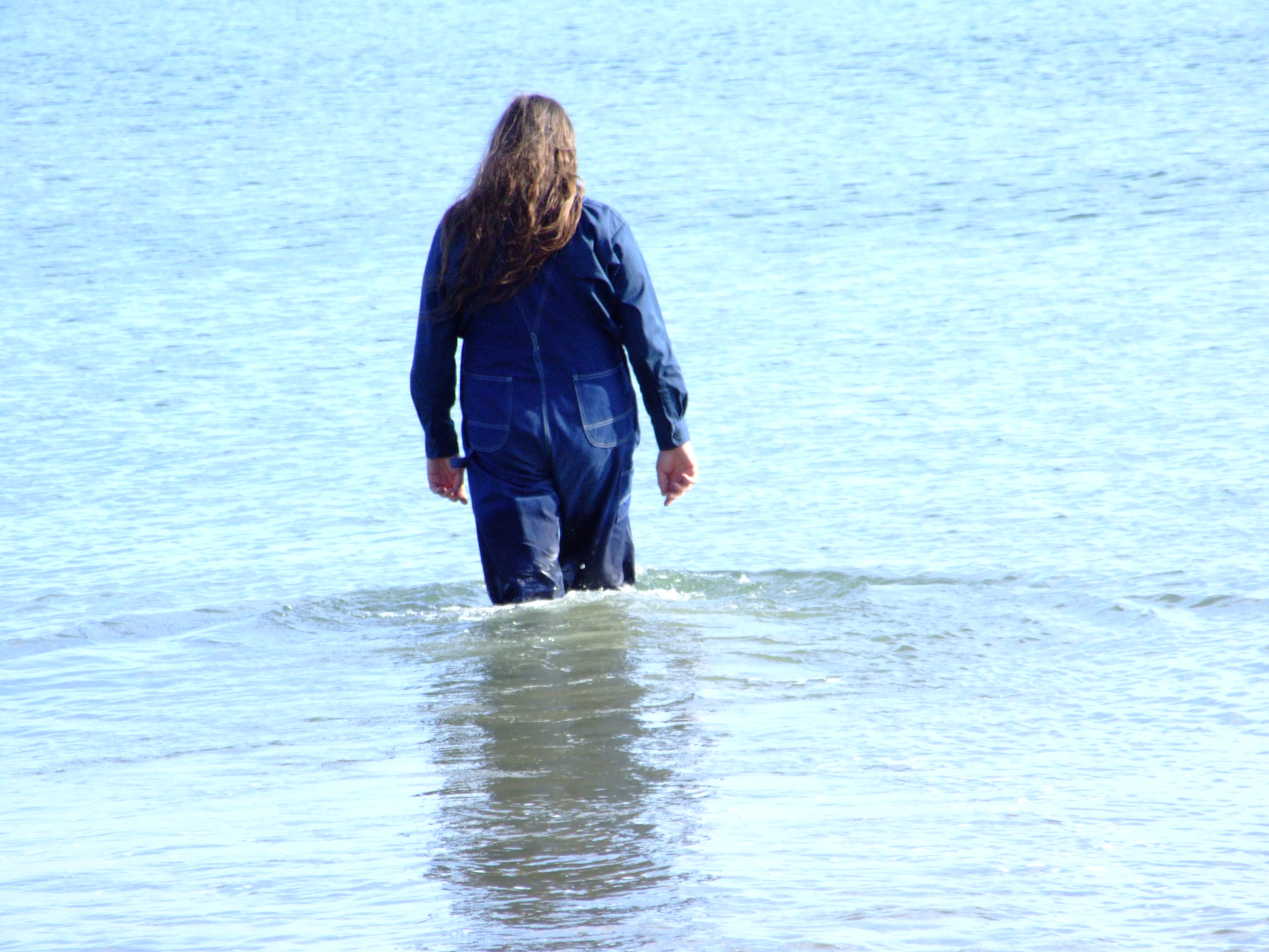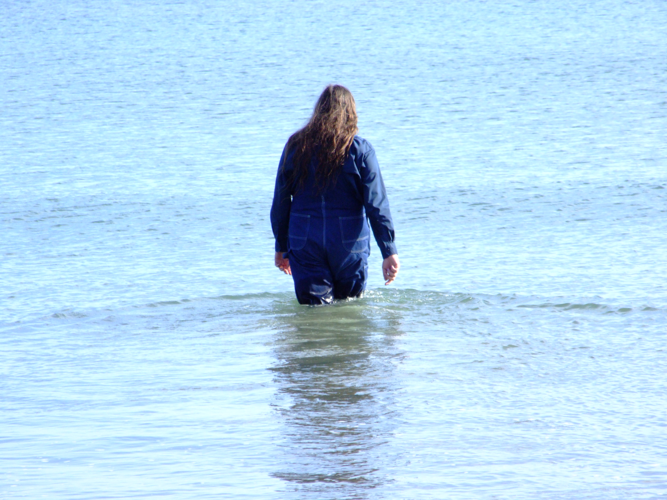 DungeonMasterOne takes a dip in the sea, in dungarees!
