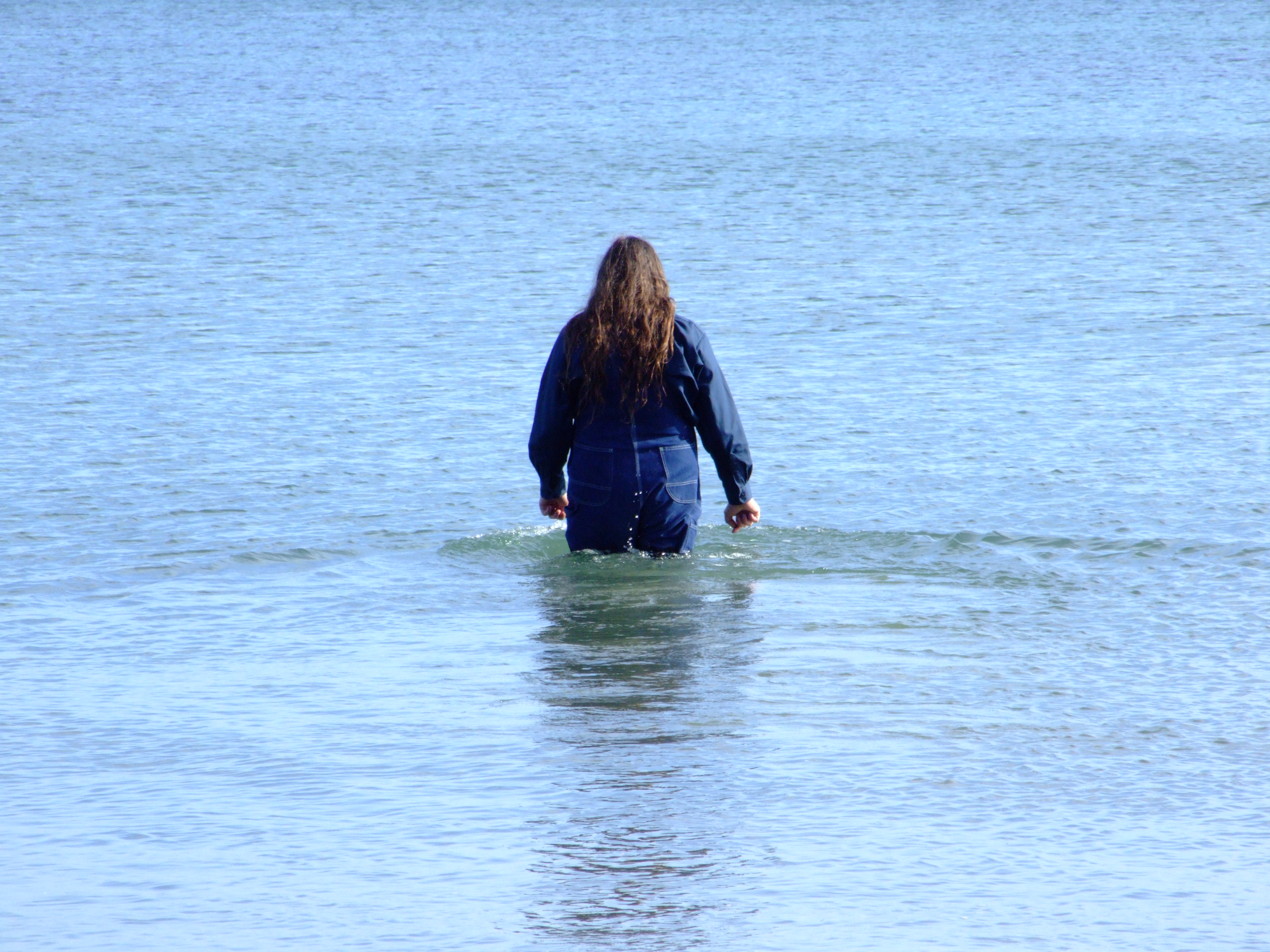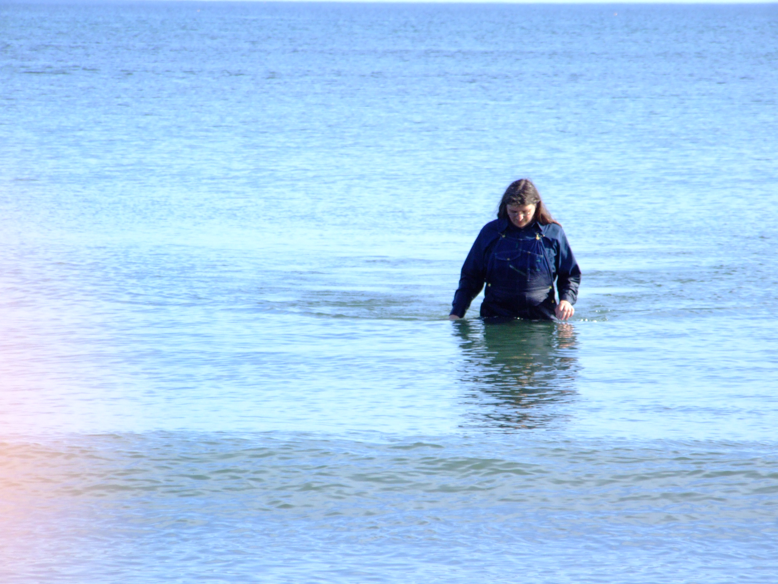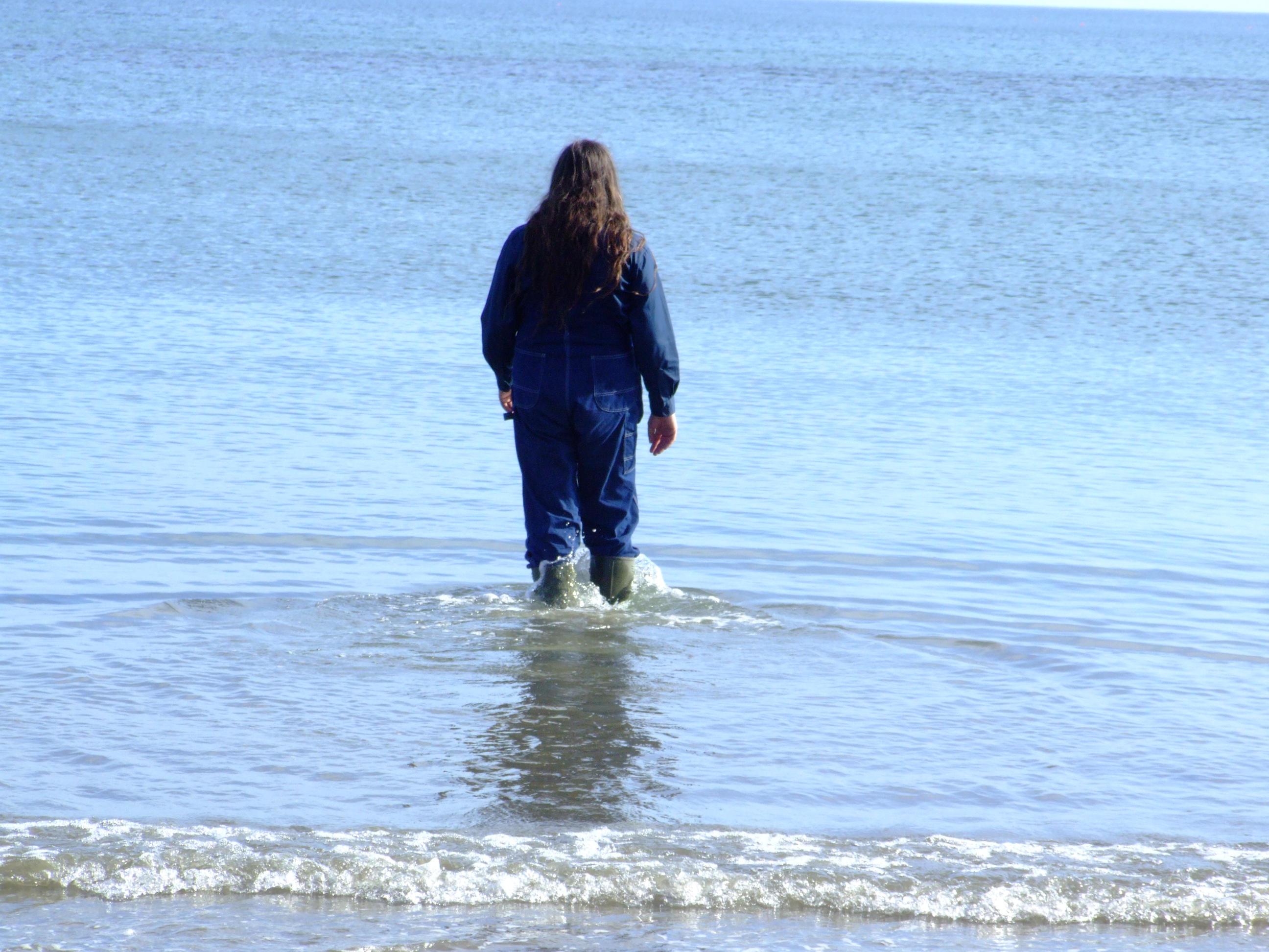 DungeonMasterOne takes a dip in the sea, in dungarees!