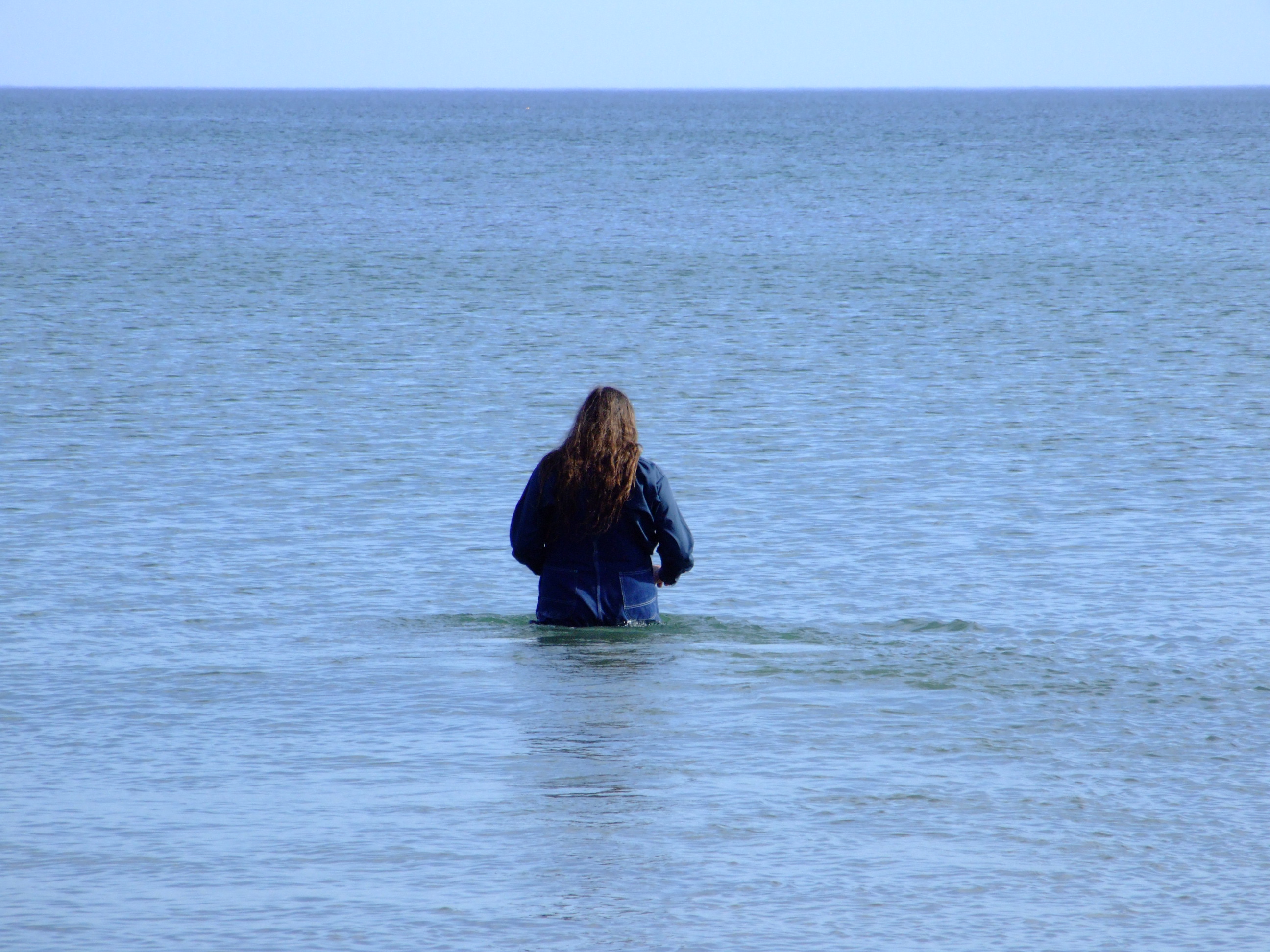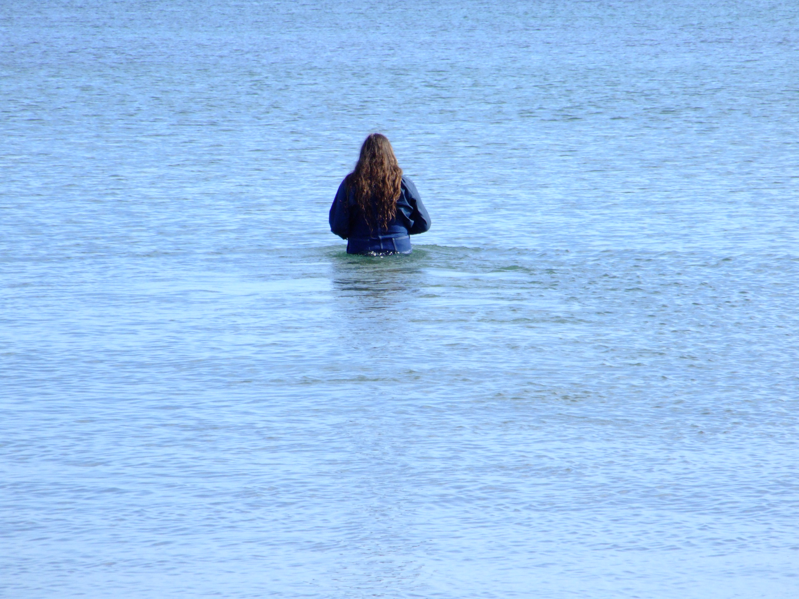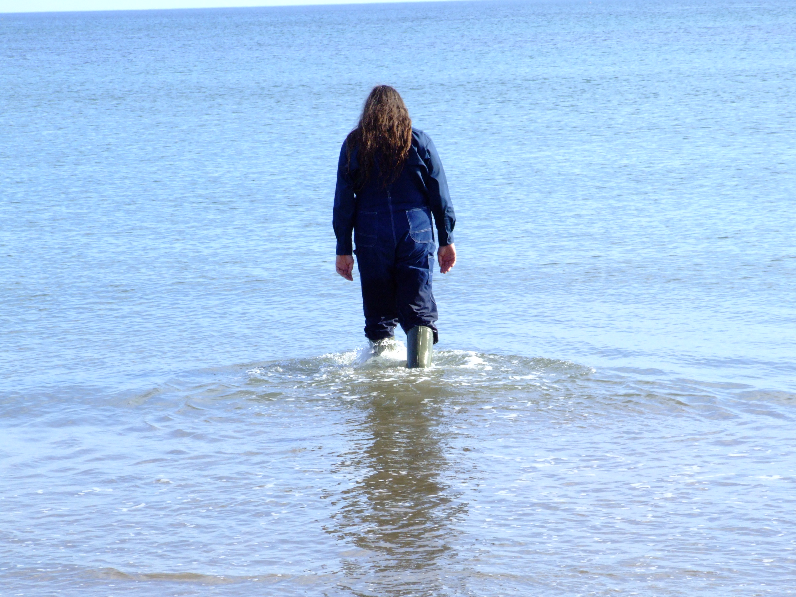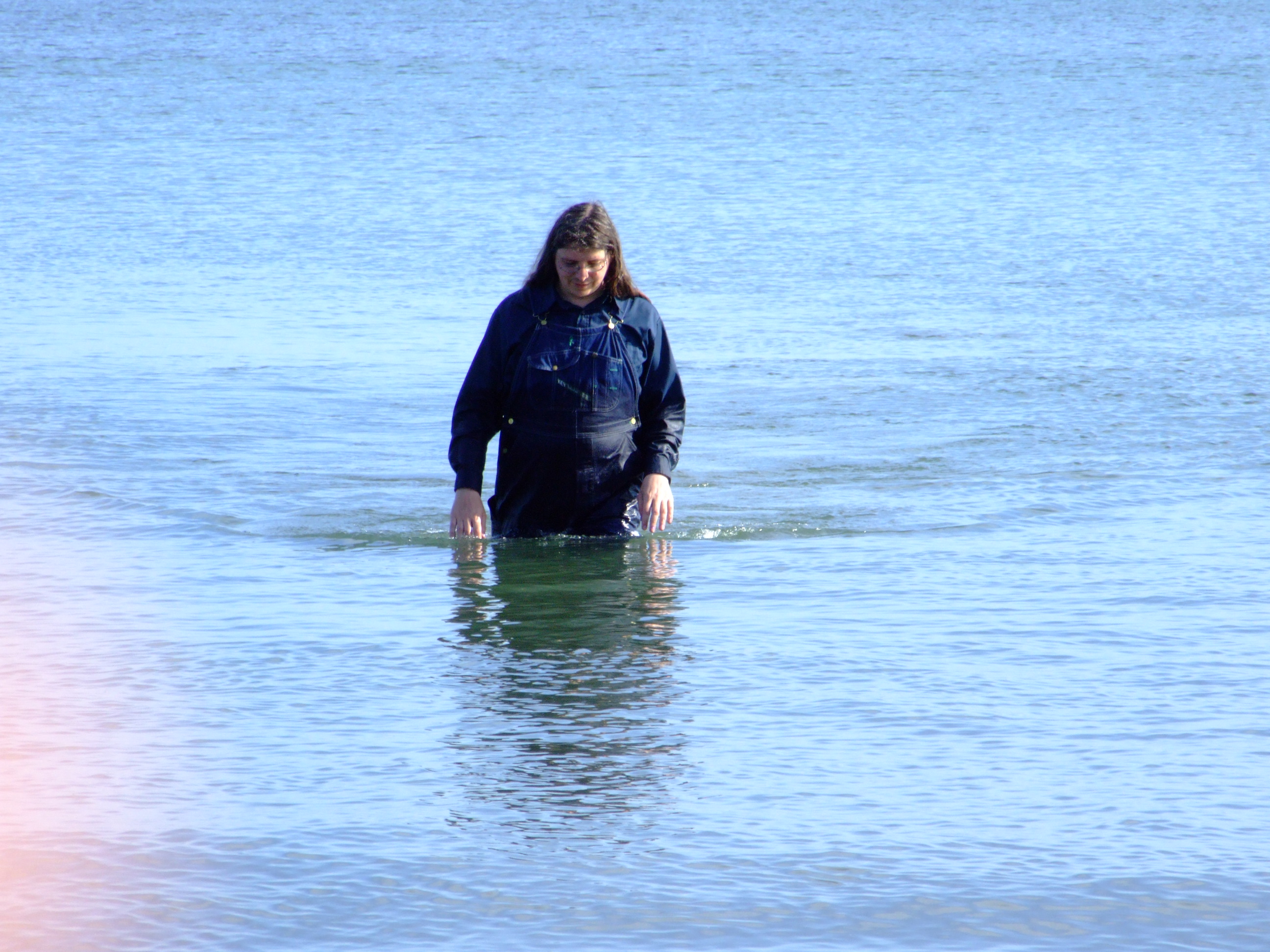 DungeonMasterOne takes a dip in the sea, in dungarees!
