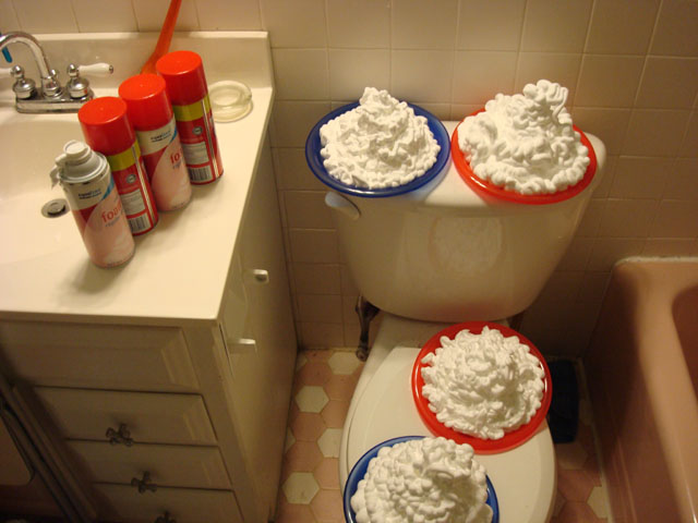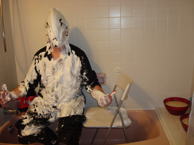 Have oatmeal, tomato soup, shaving foam and cola to splosh with tonight.