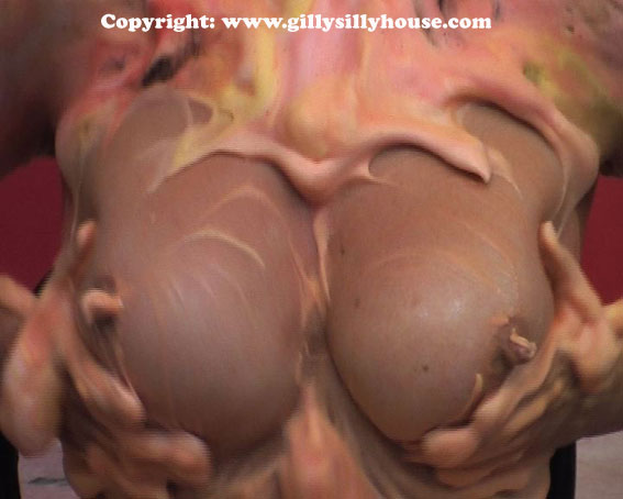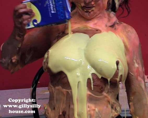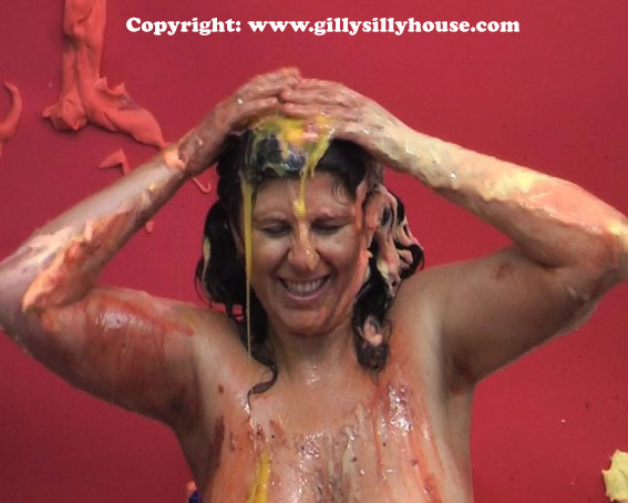 Gilly's site uses predominantly shaving foam pies because we wanted a circus/clown/Tiswas type look to the mess (rather than a food-based one) with lots of bright colours. But as you can see we use real custard as well for pouring.