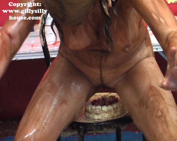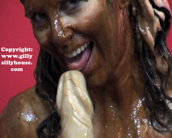 Covering my huge mock cock with custard, wanking & licking it off in the Clean & Jerk