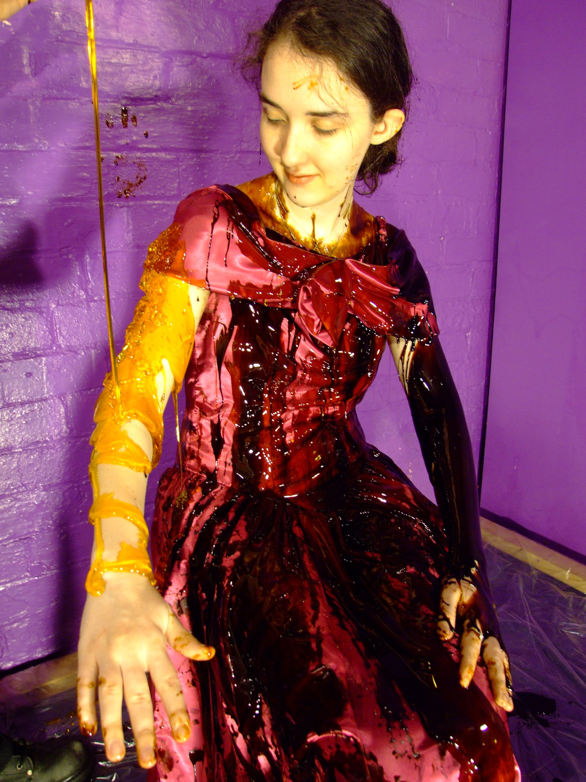 Second, we've just added an 1100-photo update, featuring brand new model Rose getting thoroughly and totally gunged in treacle, syrup, and custard! Rose has recently escaped from the clutches of a wicked uncle who wanted to marry her off for money, and has sought sanctuary at Lady Jasmime's remote stately home while she builds her independence, and breaks free from her clean-obsessed other relatives. :D