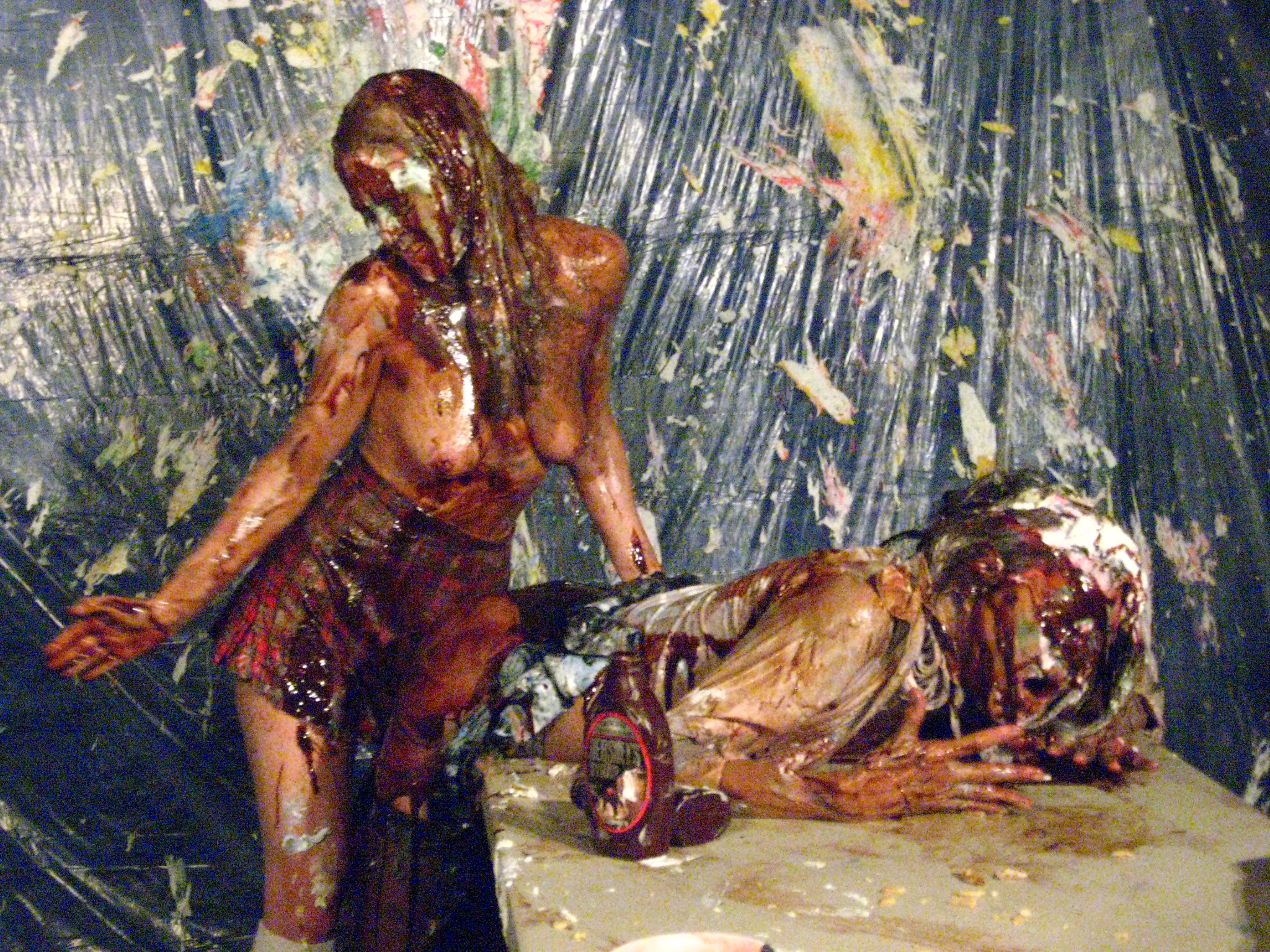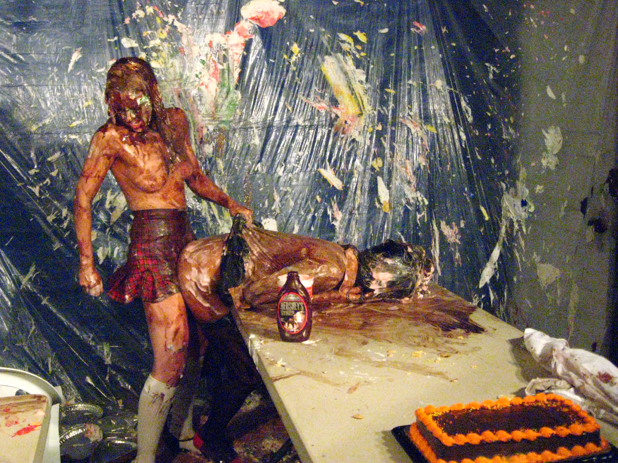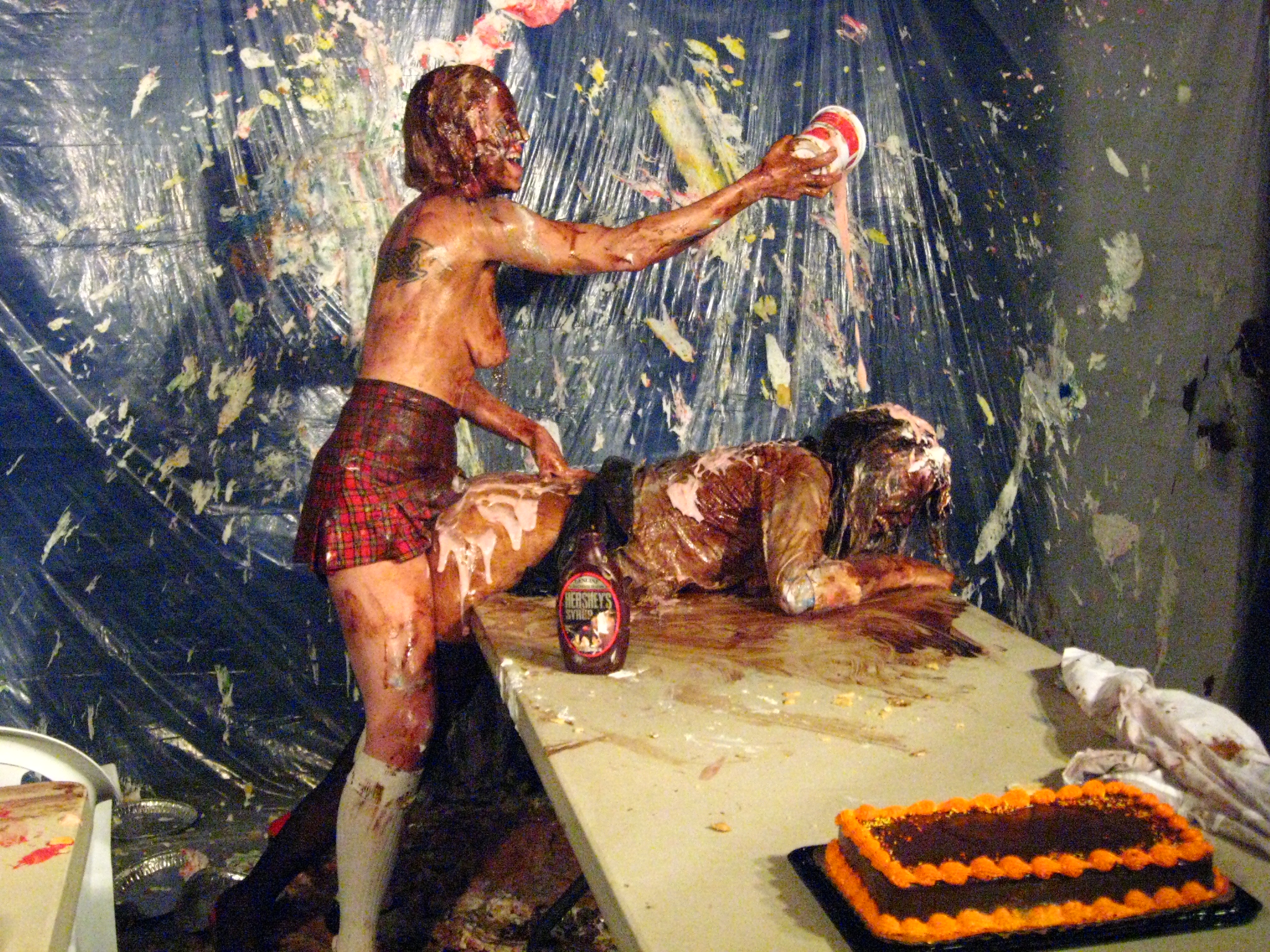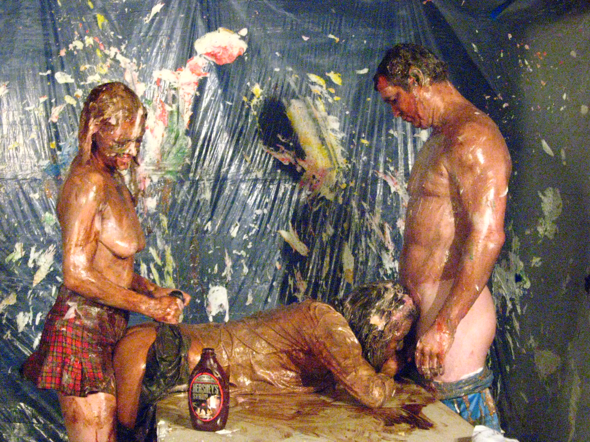 This must be the best sequence I've seen. It contains mess, nudity, interaction of guy and girls and humour. It must be a model for the future of sploshing. Speaking as an OAP, had I been the gent in the film it would have kept me aroused.
