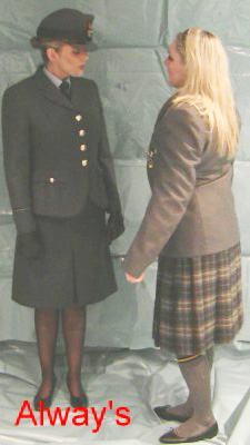 And of course anything sexy smart with a low cleavage and a very short tight skirt revealing black opaques