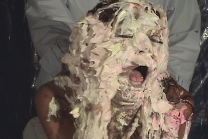 Maddy needs a job badly - and is prepared to do WHATEVER it takes to get one. So the boss first gets her to blow him - and whilst she does so pours honey, jam and chocolate over her head - then throws her over his desk and fucks her hard from behind! Problems arise when the boss's hot secretary returns early from lunch and she indignantly starts to pie the hell out of the sticky applicant as she's getting a seeing to. As a final test of her suitability the boss once again asks her what she'll do in order to land the job - she cries 'Anything!' and he smashes her already heavily-pied face into a huge chocolate cake!!