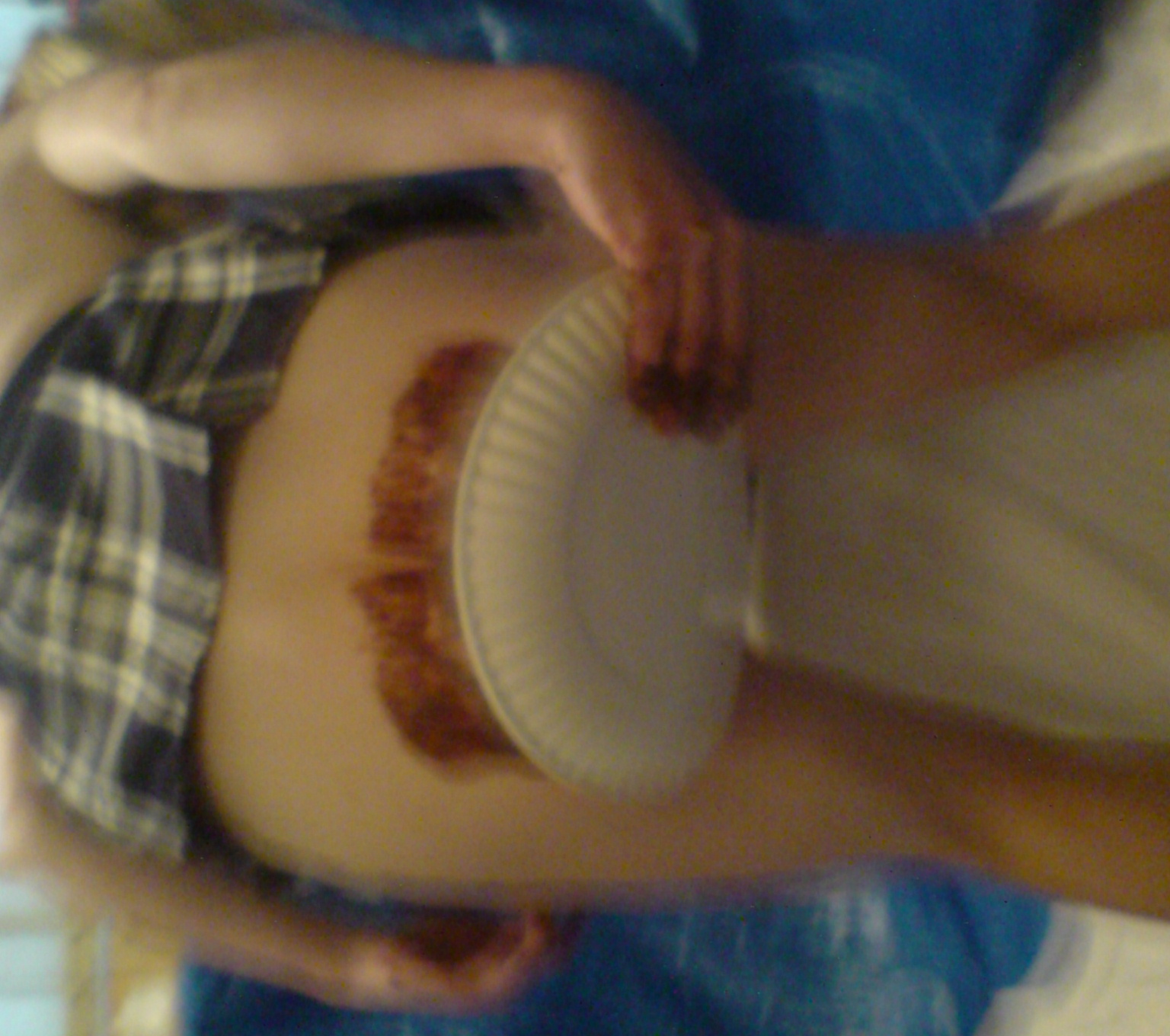 Another great photo. I really like the wonderful body and love her cuddly tummy. I would like to see her being covered in black oil and giving a blowjob while receiving a thick greasey hair shampoo or having eggs broken on her head whilst restrained.