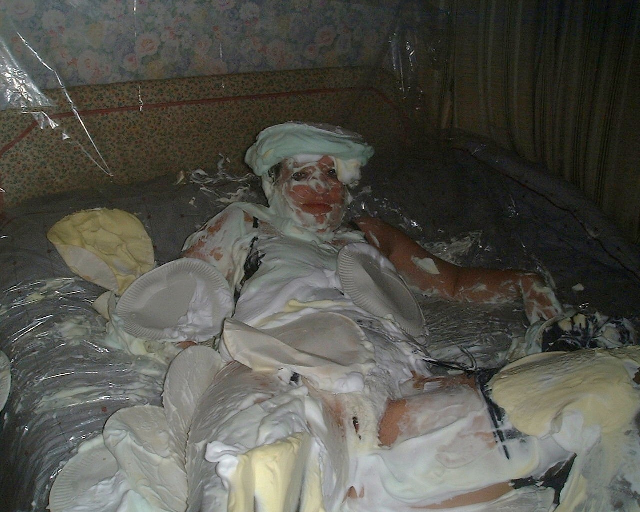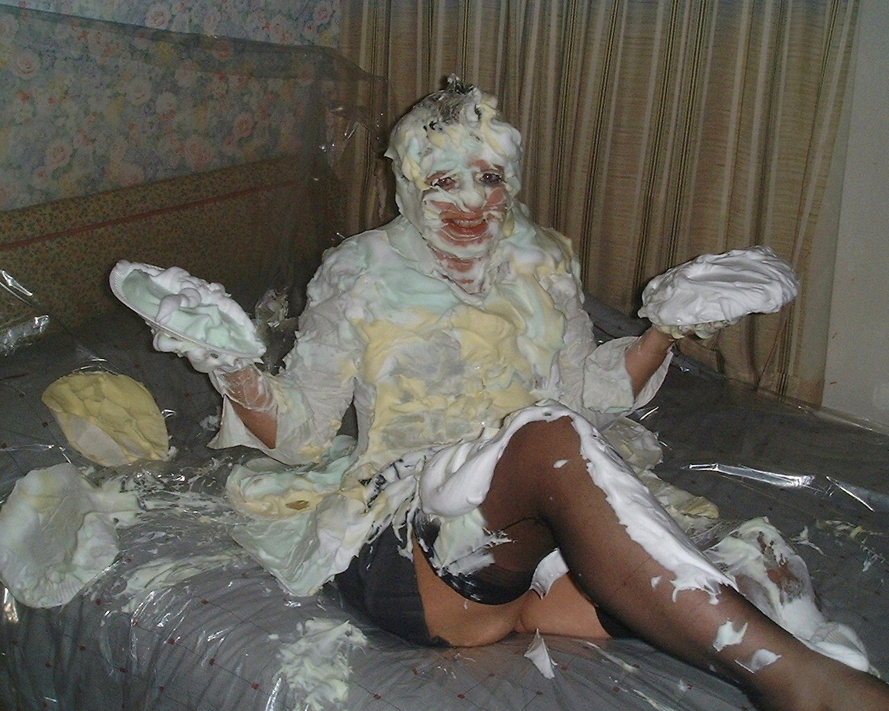 Not posted on here for a long time due to work commitments etc etc, just thought I would share a few pics of a recent session where I got totally flanned with shaving cream pies whilst wearing some very expensive fully fashioned nylons which got trashed!!!