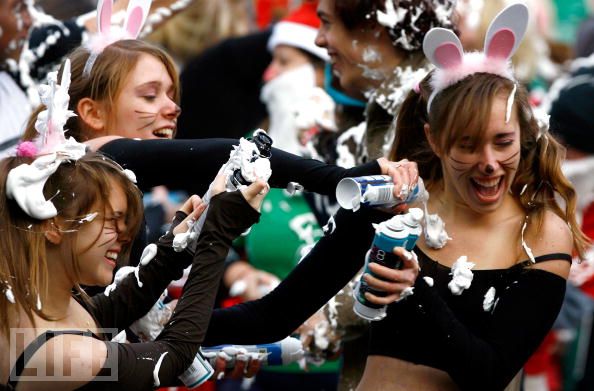Saw this in Metro this morning basicallythe first year students at St Andrews Uni indulge in a huge foam fight ...... it's worth a google!