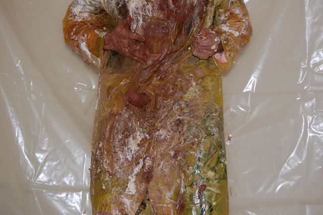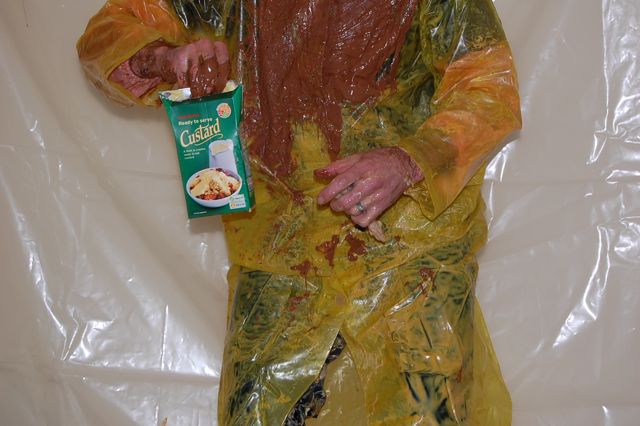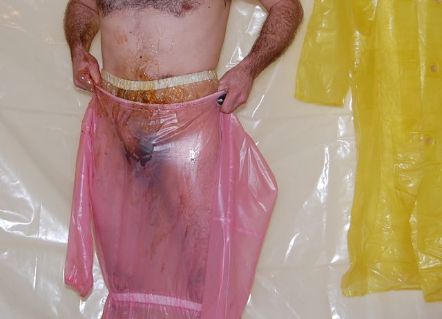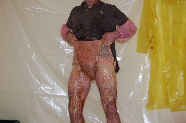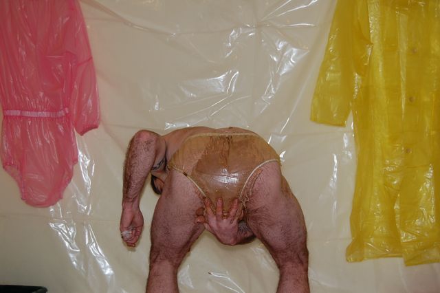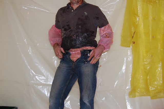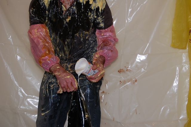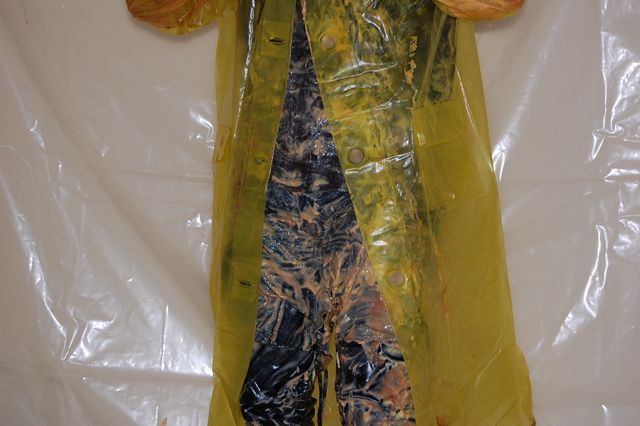 It's been 6 months since my last post and thought it high time for another. Did things differently this time, I started clean and got messily dressed. I love the way all those layers of plastic ooze against each other and your flesh when they're covered in something messy
