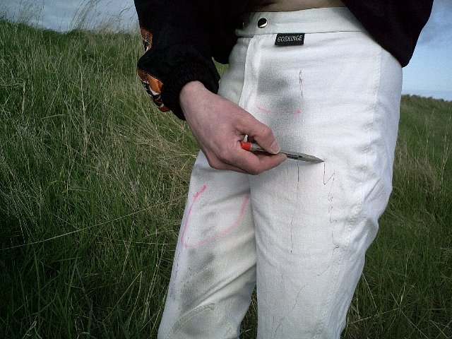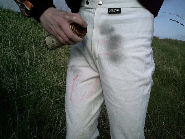I decided to use the paint and a marker pen to mess my jods, as by this time there was no-one else around, and I figured I could simply cover myself up before getting into the car. Here is the rather poor results.