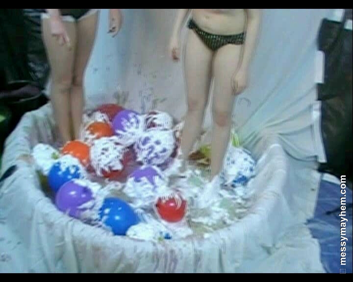 Sapphire and Louisa, our two rather busty lovelies take on the balloon bursting challenge but poor Jon struggles to make them listen to the rules of the game as they are far too busy messing around with the foamy balloons! This is far more entertaining than the game itself which turns out to be a bit of an anti-climax but nevertheless one of them ends up looking like a creme egg with a fried egg on top (but generally more messy and sexy)! The video features an out-take of Sapphire doing her rather unusual party piece.
